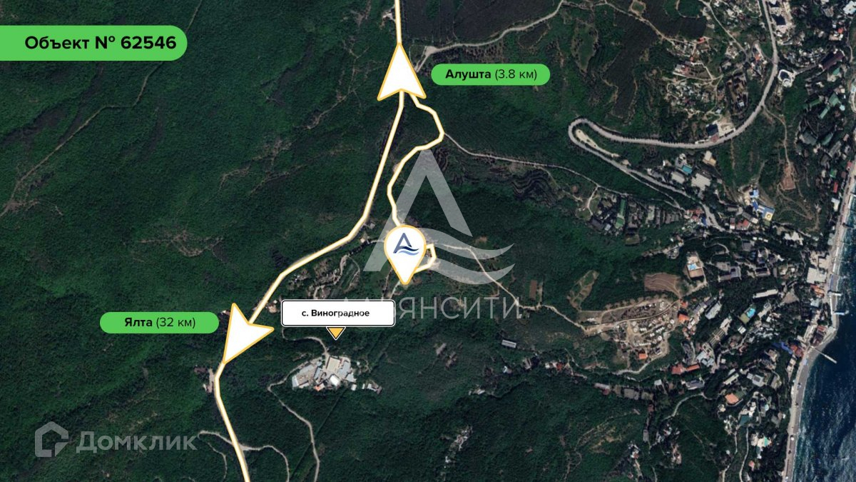 Локация: участок находится в пригороде Алушты в 1 км от города. Место тихое и спокойное, до моря можно спуститься за 5-7 мин на автомобиле. До ближайшего детского сада, школы или продуктового супермаркета 5 мин езды.