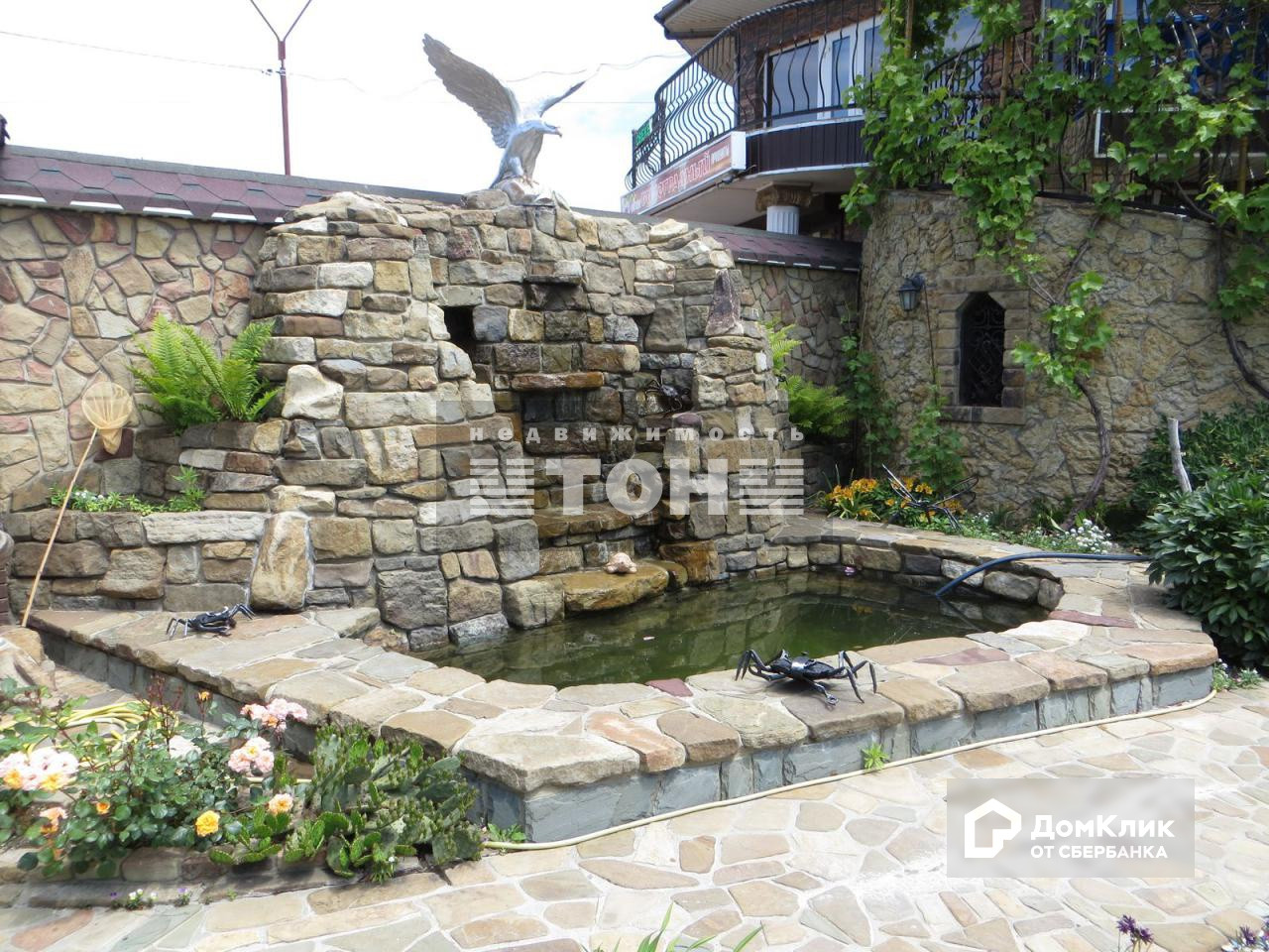 Придомовая территория полностью благоустроена, оборудованы фонтаны, выполнены ландшафтные работы, летняя беседка, под которой находится погреб.