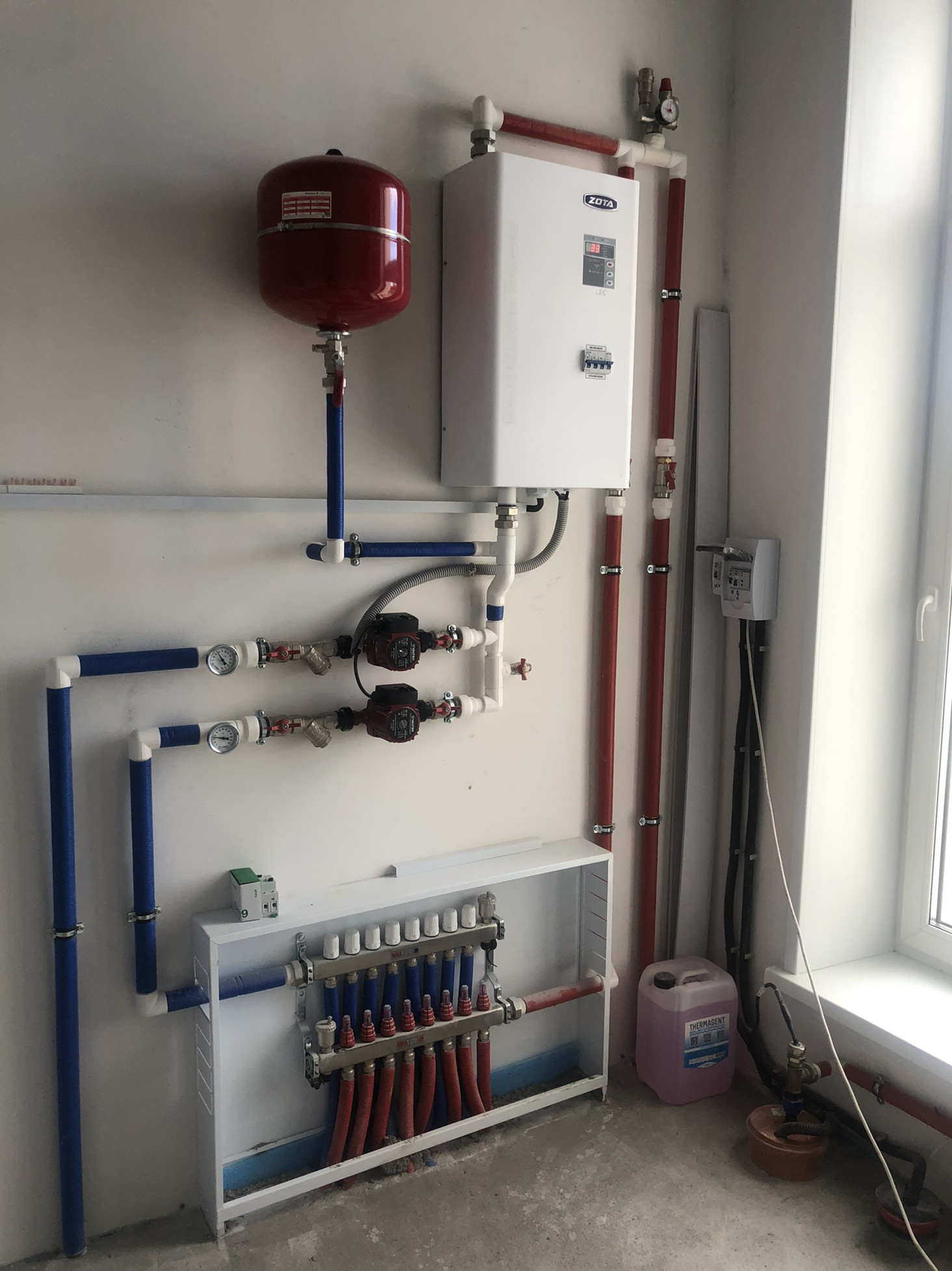 Отопление: Электрический котел 18кВт (по желанию можно установить газовый), теплые полы- оригинальный итальянский Valtec по всему дому.