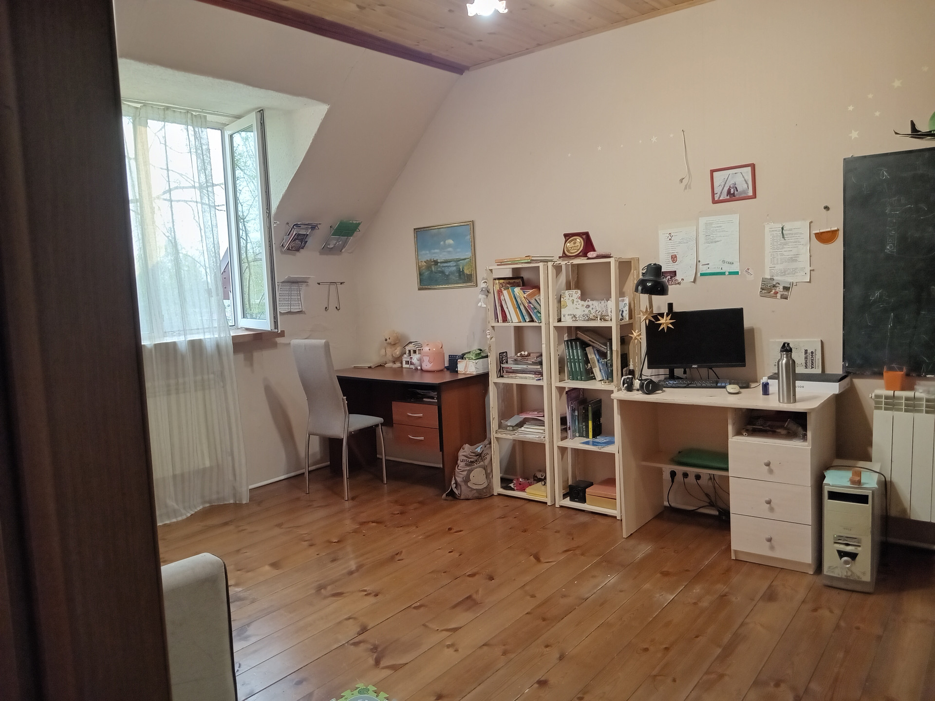 Есть заезд на участок и 2 парковочных места за территорией. Забор из сетки-рабицы на стальных трубах. Скважина 30м, станция водоподготовки в подвале дома. Подземная труба от скважины в дом греется спутником от системы отопления и дублируется электрическим нагревателем. Есть чердак. Шамбо на 20 кубов, хватает на долго.