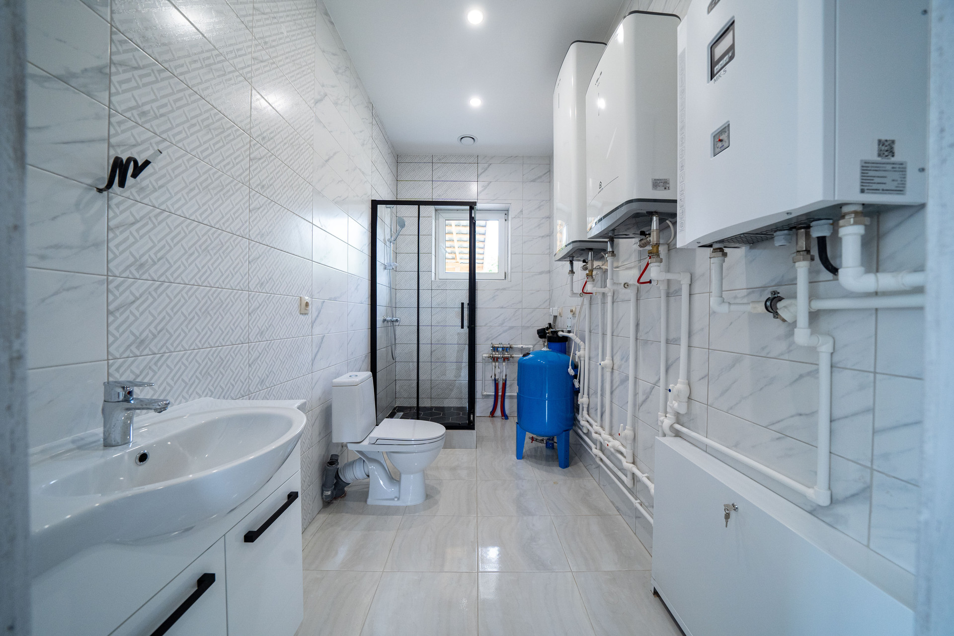 ОТОПЛЕНИЕ: Мини-котельная на 12 кВт. Система - Теплый пол по всей площади дома с разбивкой на контуры для каждого помещения.