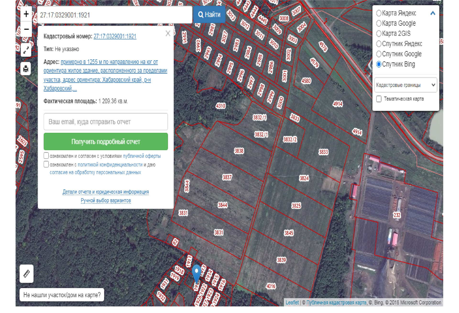 Кадастровый номер участка 27:17:0329001:1921