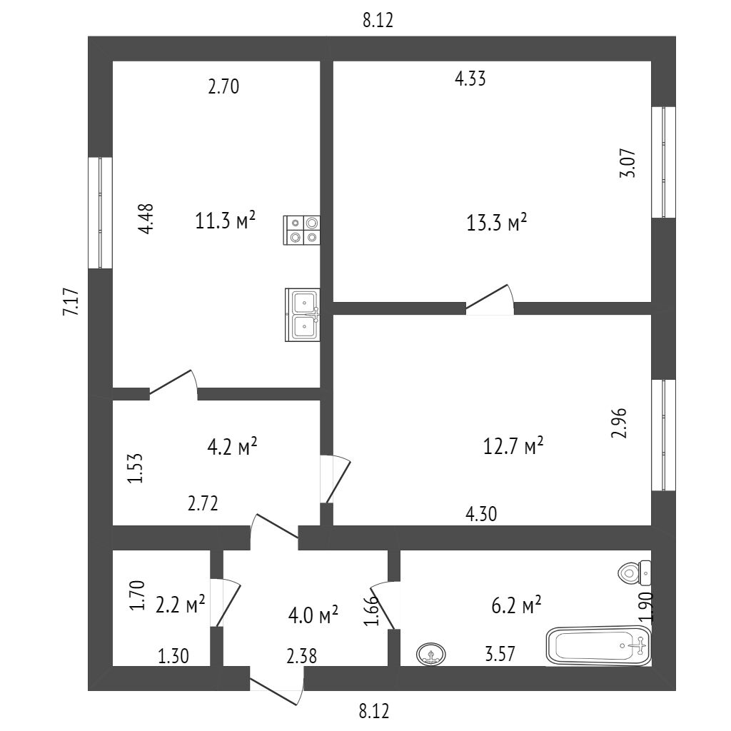 - холл 4.2 кв.м.