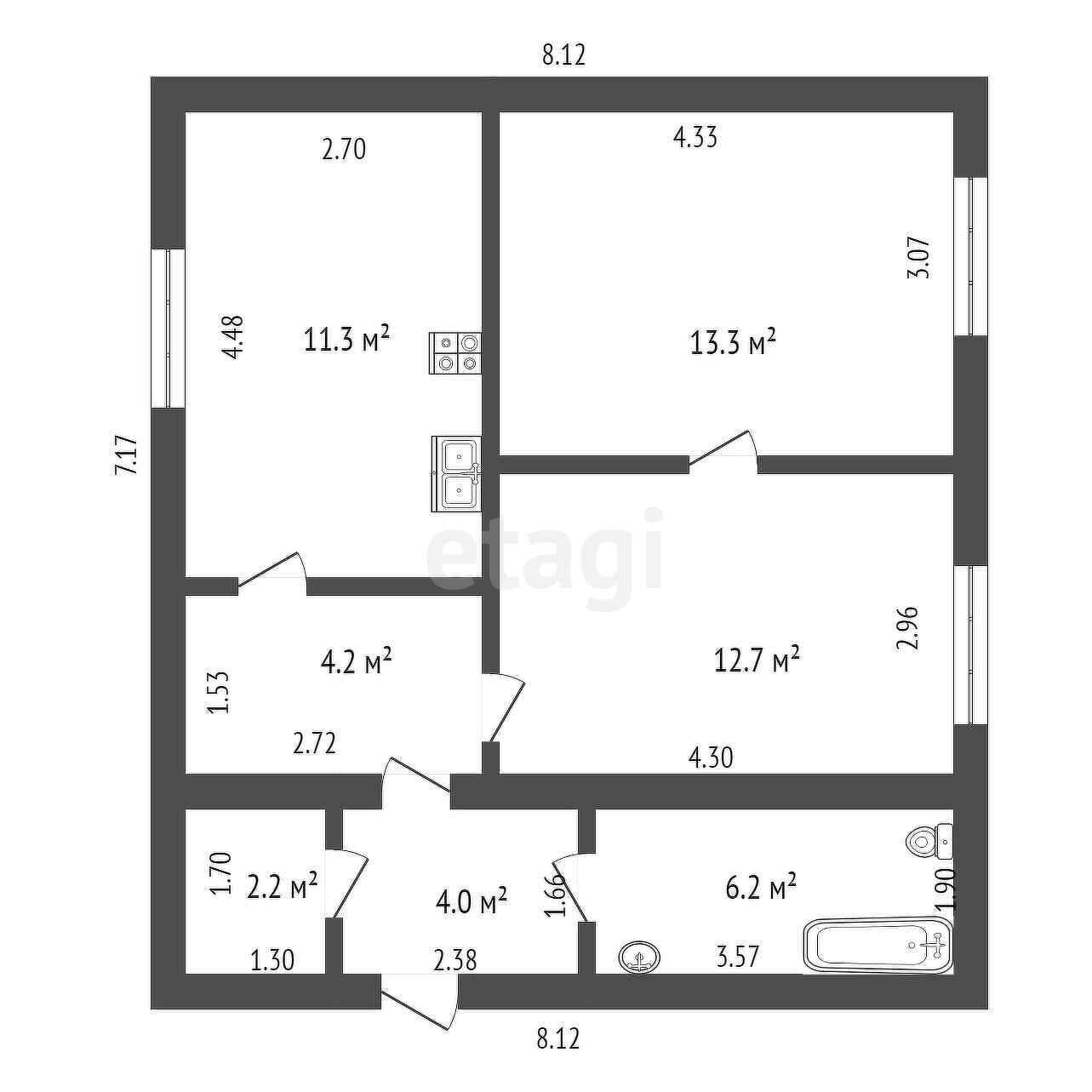 Общая площадь 53.8 м2