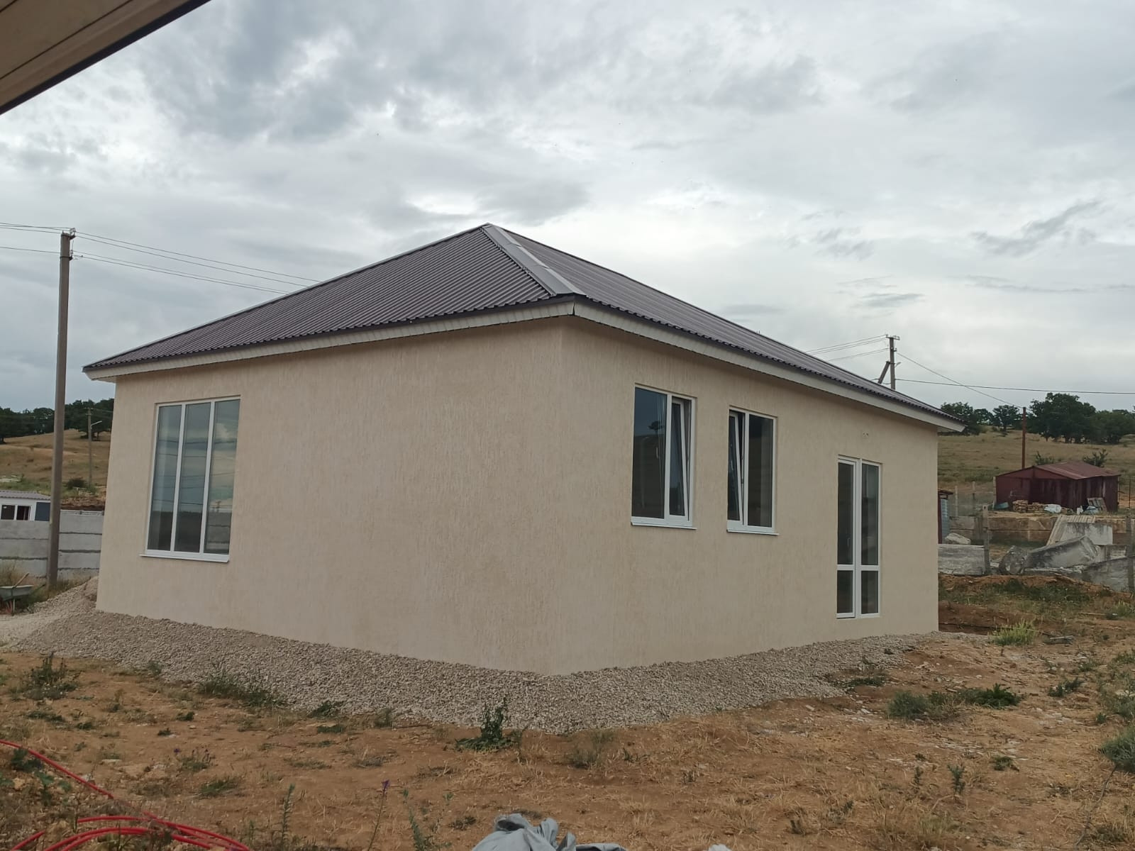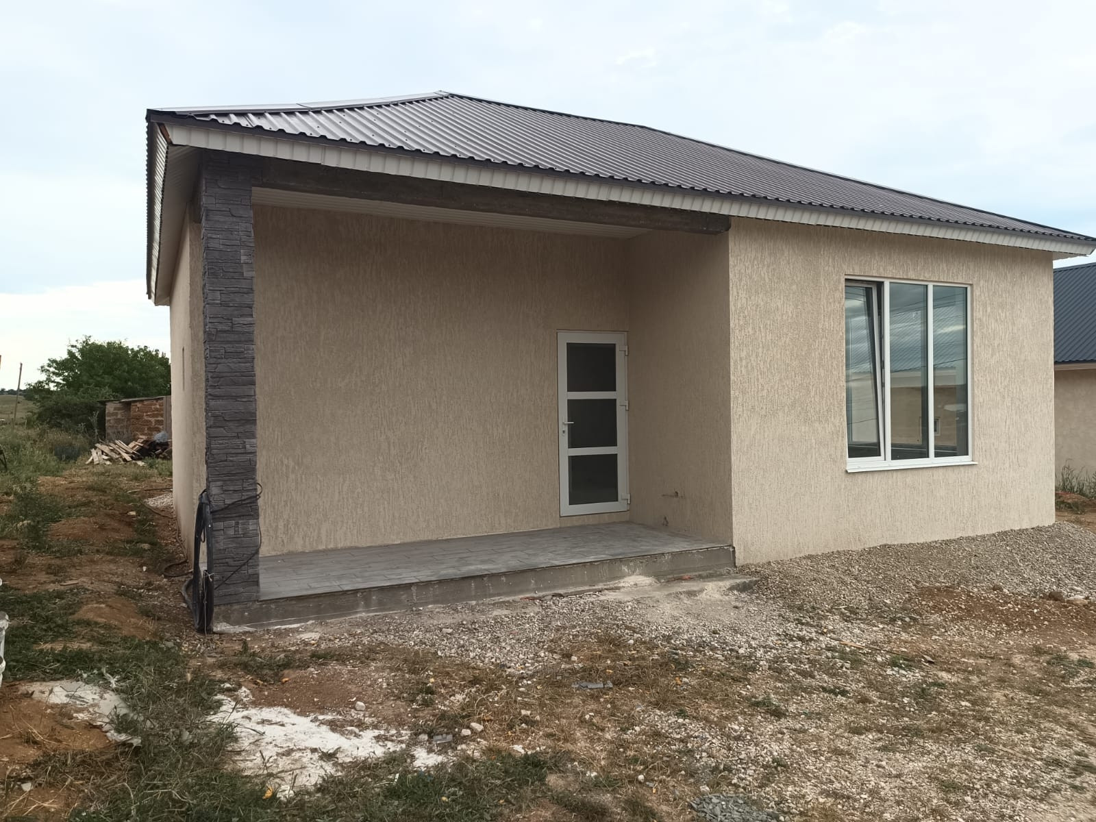 СРОЧНО! Продаётся новый (2024 г) 1-этажный уютный дом 85м в с. Вишнёвое, ул. Дружбы. В доме  холл 16м , 2 спальни по 14 м, большая кухня 16м с выходом во двор, просторный санузел 8м, терраса во входной группе. Предчистовая отделка, на полу кафель. Отопление - тёплый водяной пол под любой котёл: электрический, газовый.