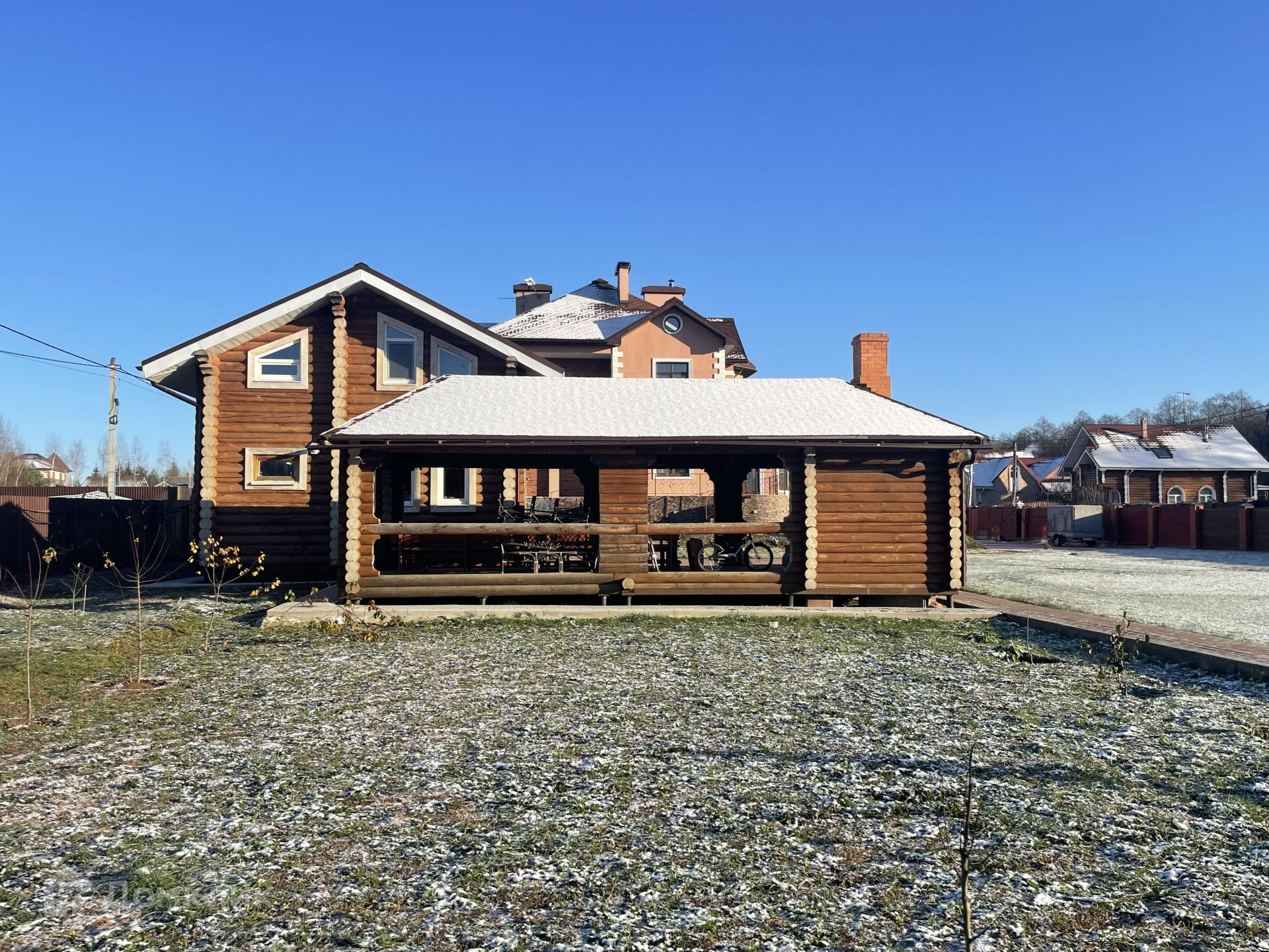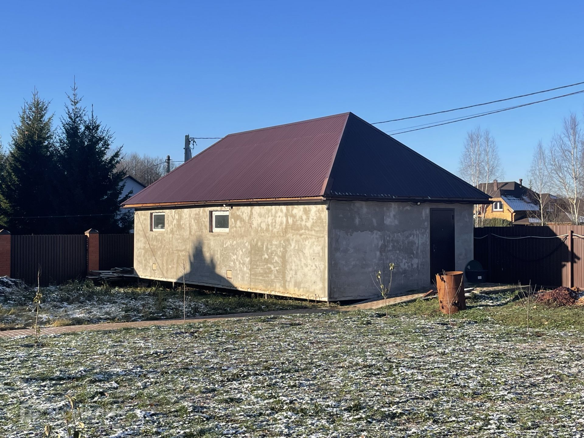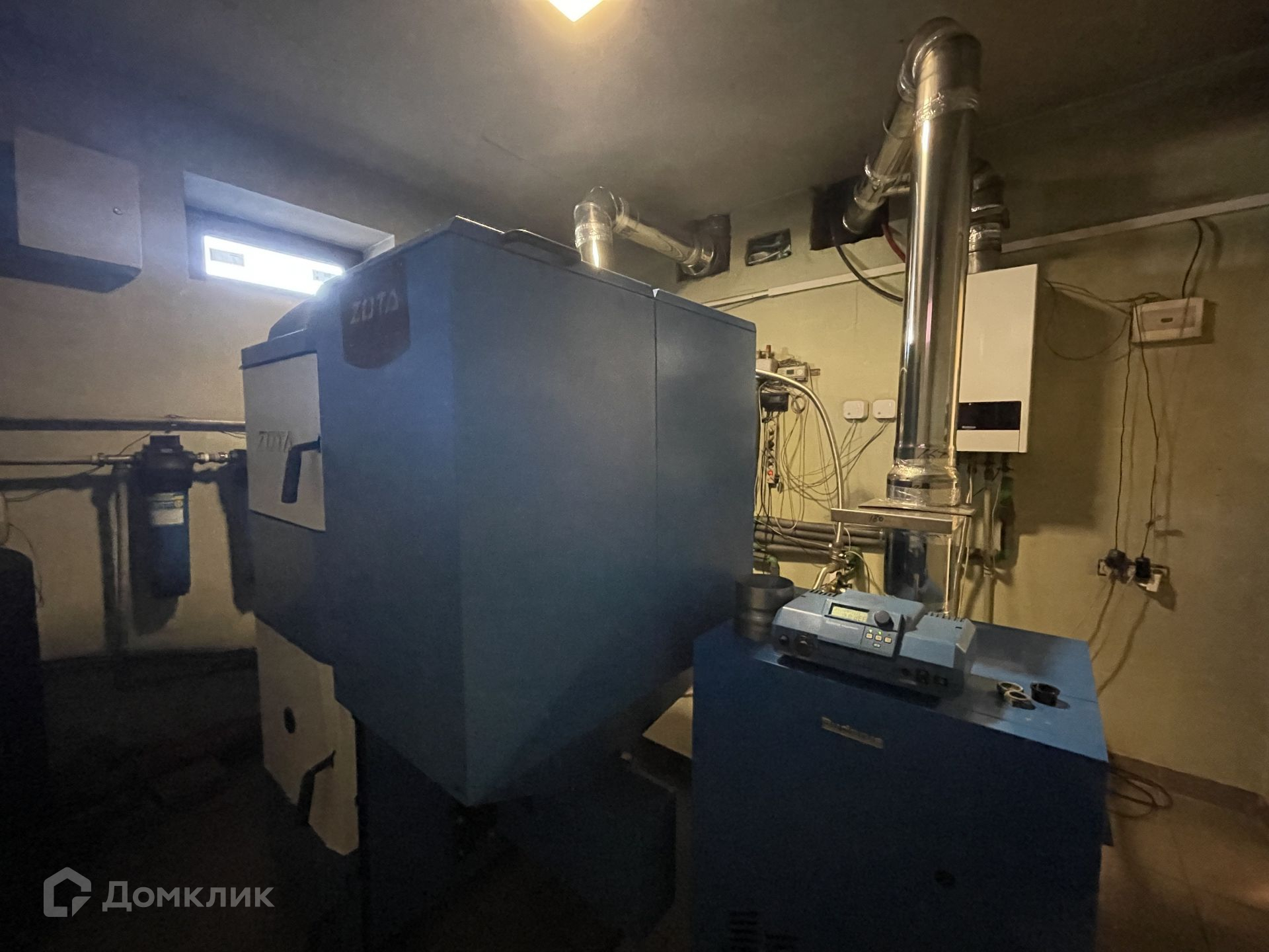 Коммуникации: электроэнергия 15 кВт, газ - газгольдер 10 куб.м, канализация, водоснабжение - все это уже в доме.