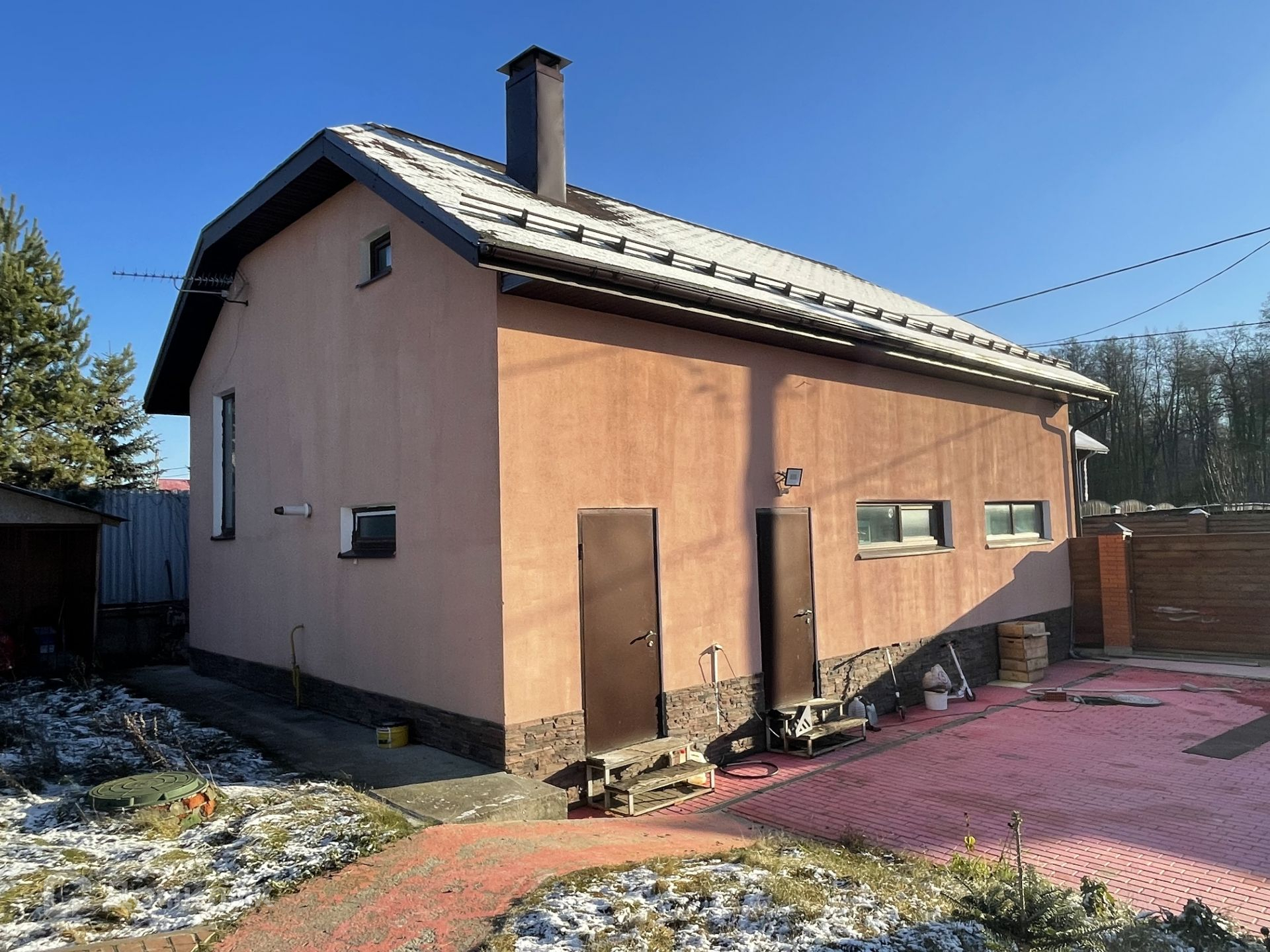 Первый этаж: просторная гостиная с камином, 2 комнаты, кухня - столовая с выходом на террасу, совмещенный санузел, кладовая.