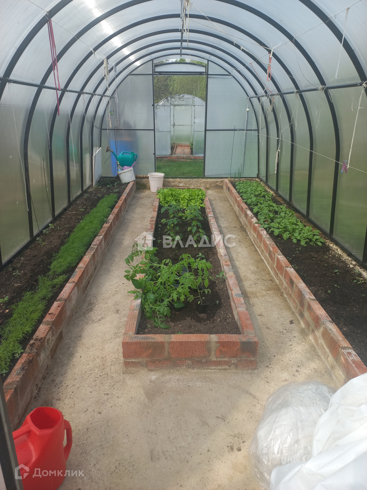 -  2 теплицы ,есть зона с огрожденными грядками,2 огромных цветника, плодоносящие яблони, груша, вишня,малинник и прочее.