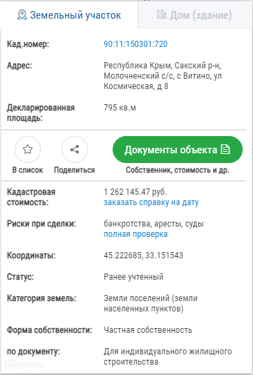 Стоимость недвижимости: