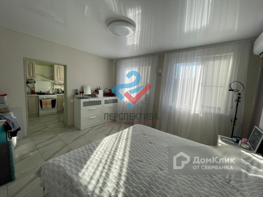 В спальне выполнен хороший ремонт с натяжными потолками. На кухне есть встроенный кухонных гарнитур. Имеется помещение под гардеробную.