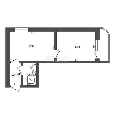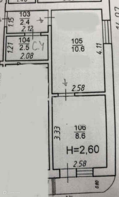 Общая площадь 26.1 м2