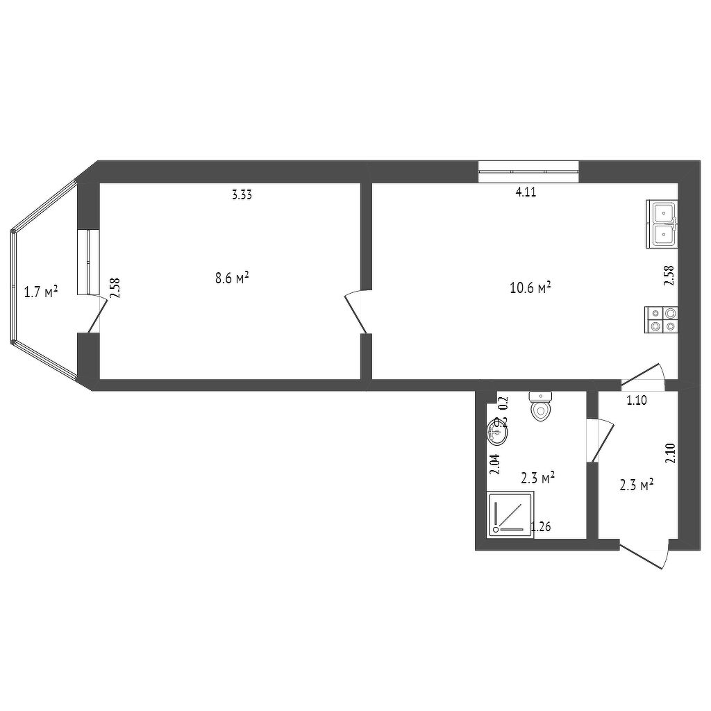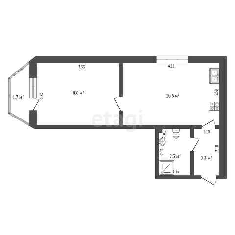 Площадь кухни 2.3 м2