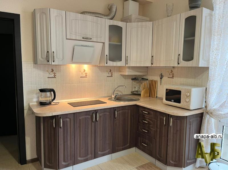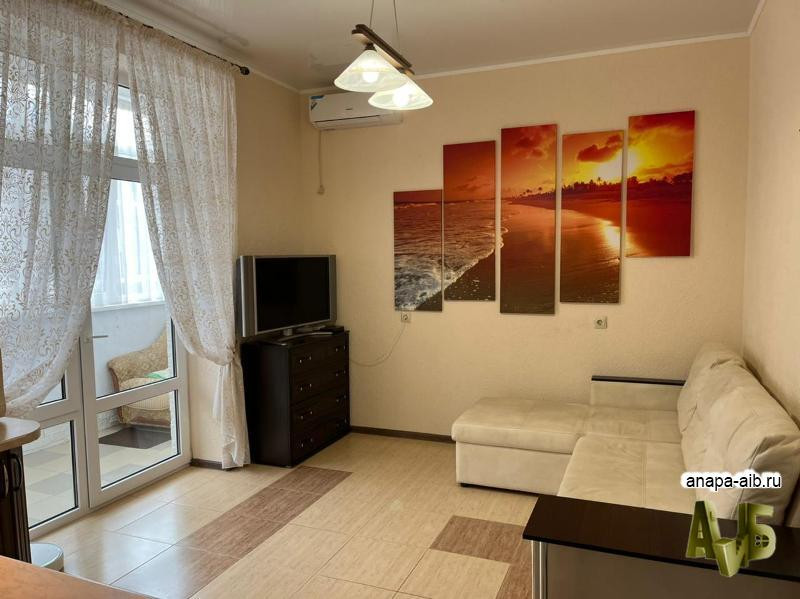 Однокомнатная квартира в Анапе | Витязево. Общая площадь квартиры 39,3 кв.м, без учета двух балконов площадью 5,83 и 4,22 кв.м. жилая комната 12,66 кв.м, кухня-гостиная 13,89 кв.м. гардеробная и санузел. Квартира расположена на 3/5-этажного нового дома, окна во двор. Квартира с качественной отделкой по европейским стандартам. Квартира оборудована всей необходимой мебелью и техникой. В доме центральные коммуникации, отопление индивидуальное.