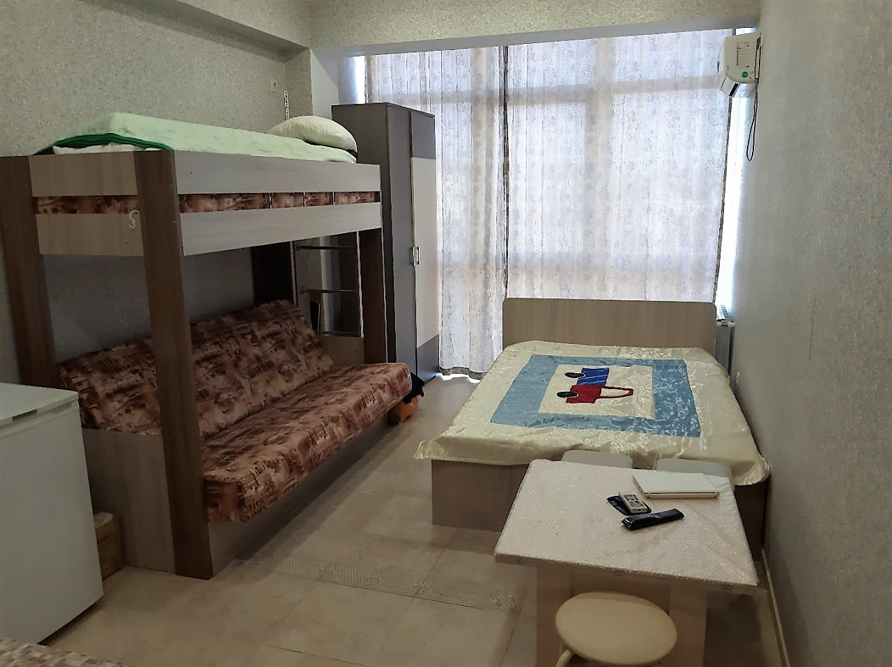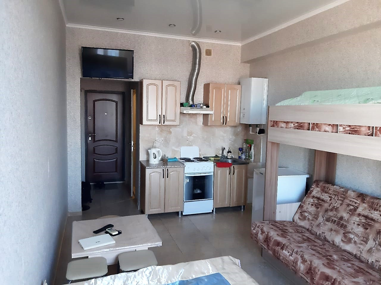 Жилая площадь квартиры составляет 12 квадратных метров, а общая — 21,5 квадратных метров. Есть кухонный уголок, где Вы можете готовить свои любимые блюда. Квартира с косметическим ремонтом и простой, но уютной мебелью. Частная собственность.