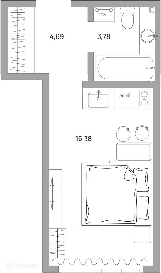 Общая площадь 21 м2