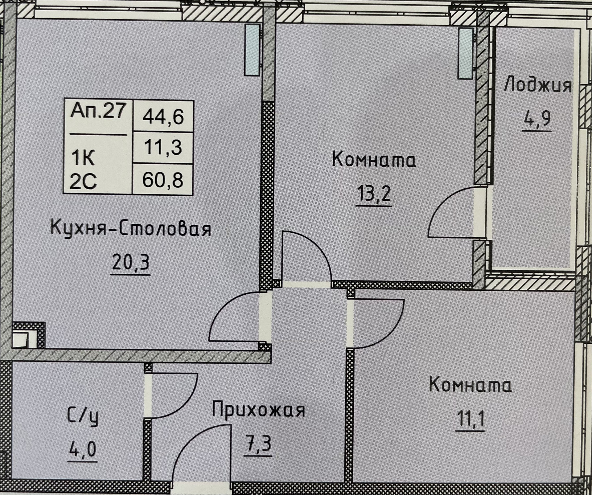 Общая площадь 60.8 м2