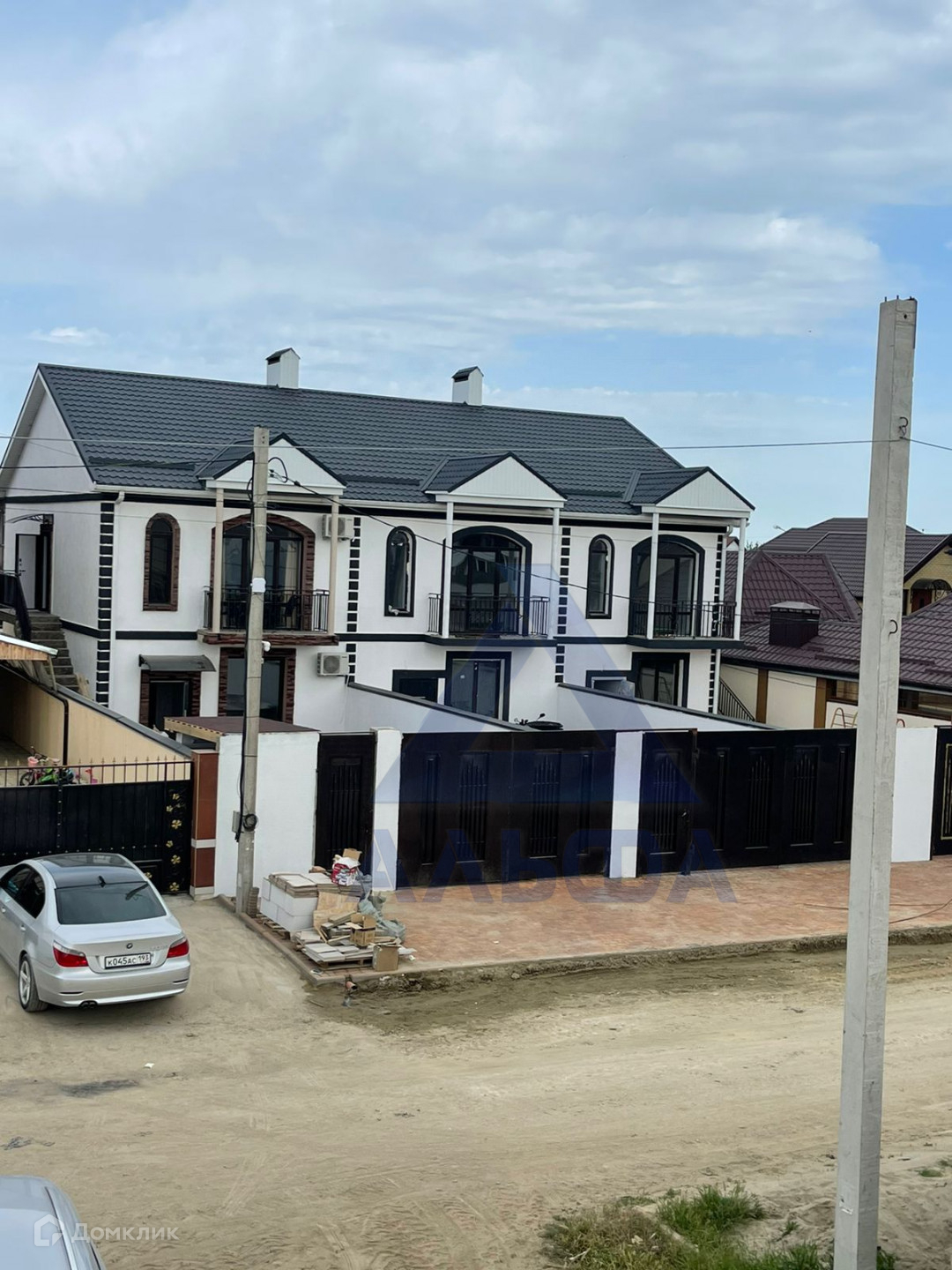 Во дворе забетонировано место под два автомобиля, отмостка, площадка сзади дома!