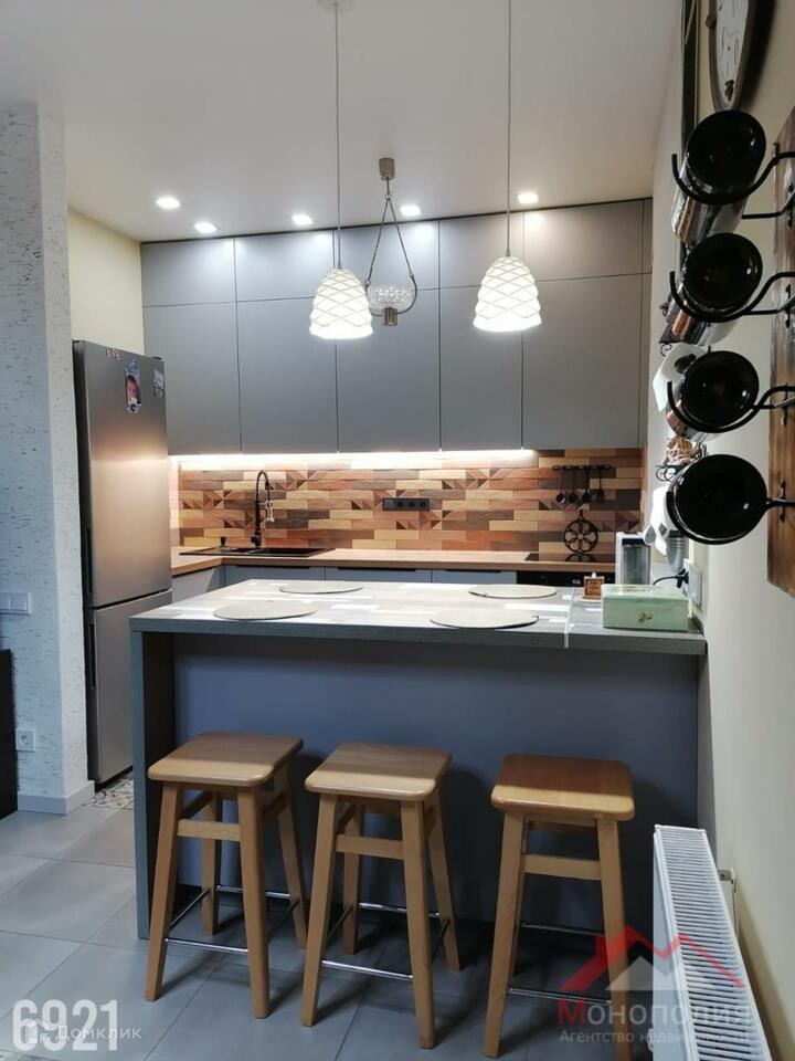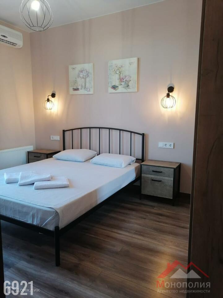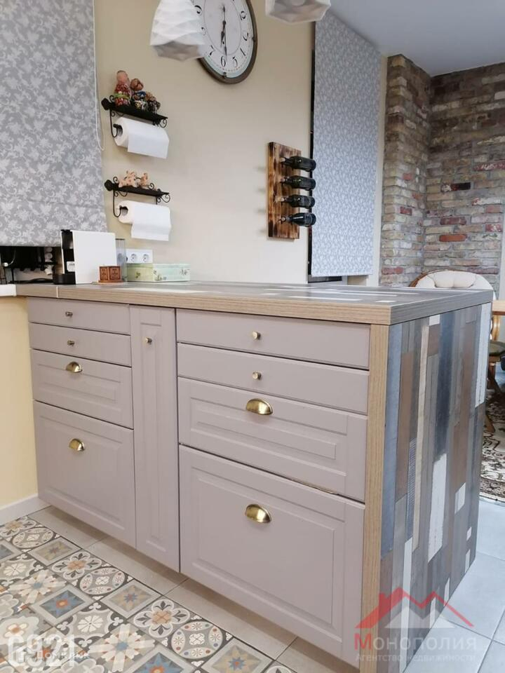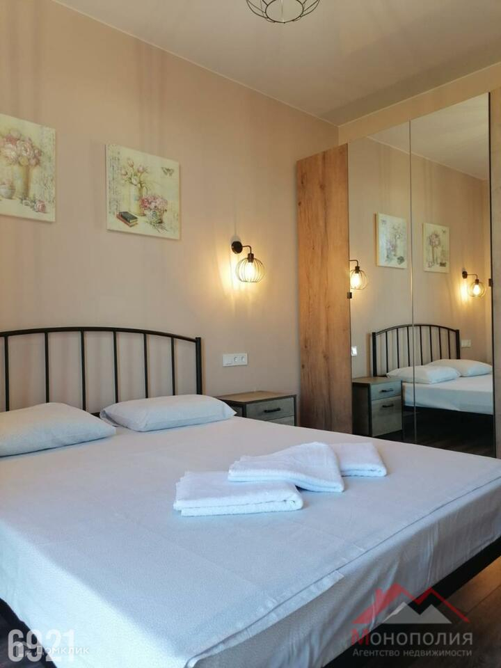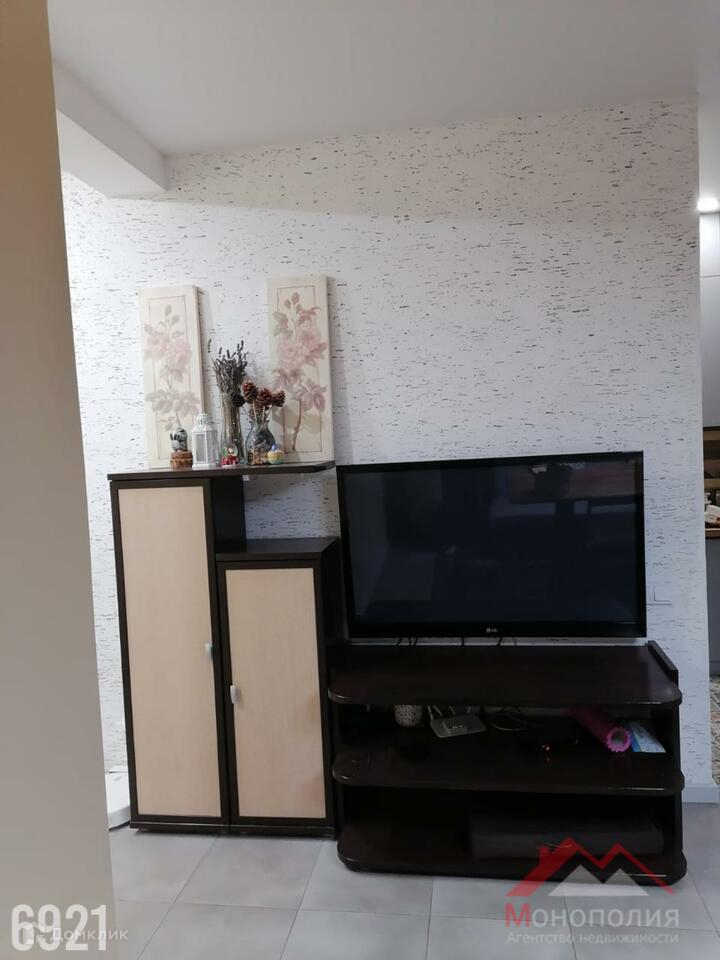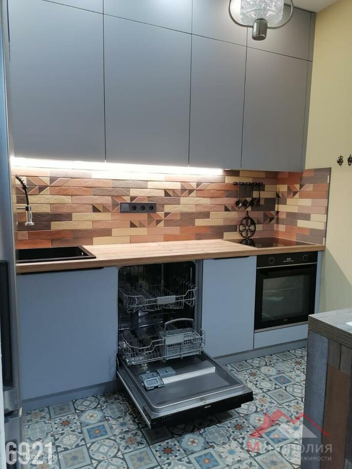 Кухня – гостиная с новым комплектом кухонной мебели(ООО «Дедал-Сервис) и встроенной бытовой техникой, встроенный кухонный остров(Икеа), холодильник(DЕХР). В гостиной ТВ зона с телевизором, со спутниковой приставкой Триколор, Интернет, раскладной диван(Икеа). Пол выложен напольной плиткой. Спальная комната 14 кв.м., раскладной диван(Икеа), пол выложен кварцвиниловой плиткой. Межкомнатные двери (ПрофилДорс)