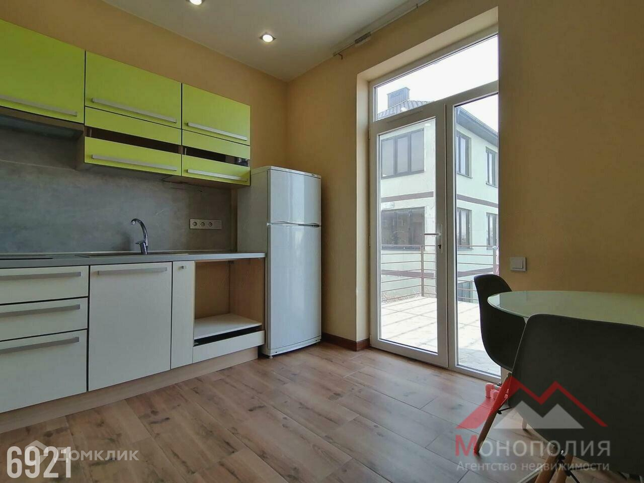 Кухня с новым комплектом кухонной мебели(Шатура мебель) и встроенной бытовой техникой, холодильник. Кухонный стеклянный столик со стульями(Ноff). Полы в ванной, коридоре, кухне выложены напольной плиткой. Межкомнатные двери (ПрофилДорс)