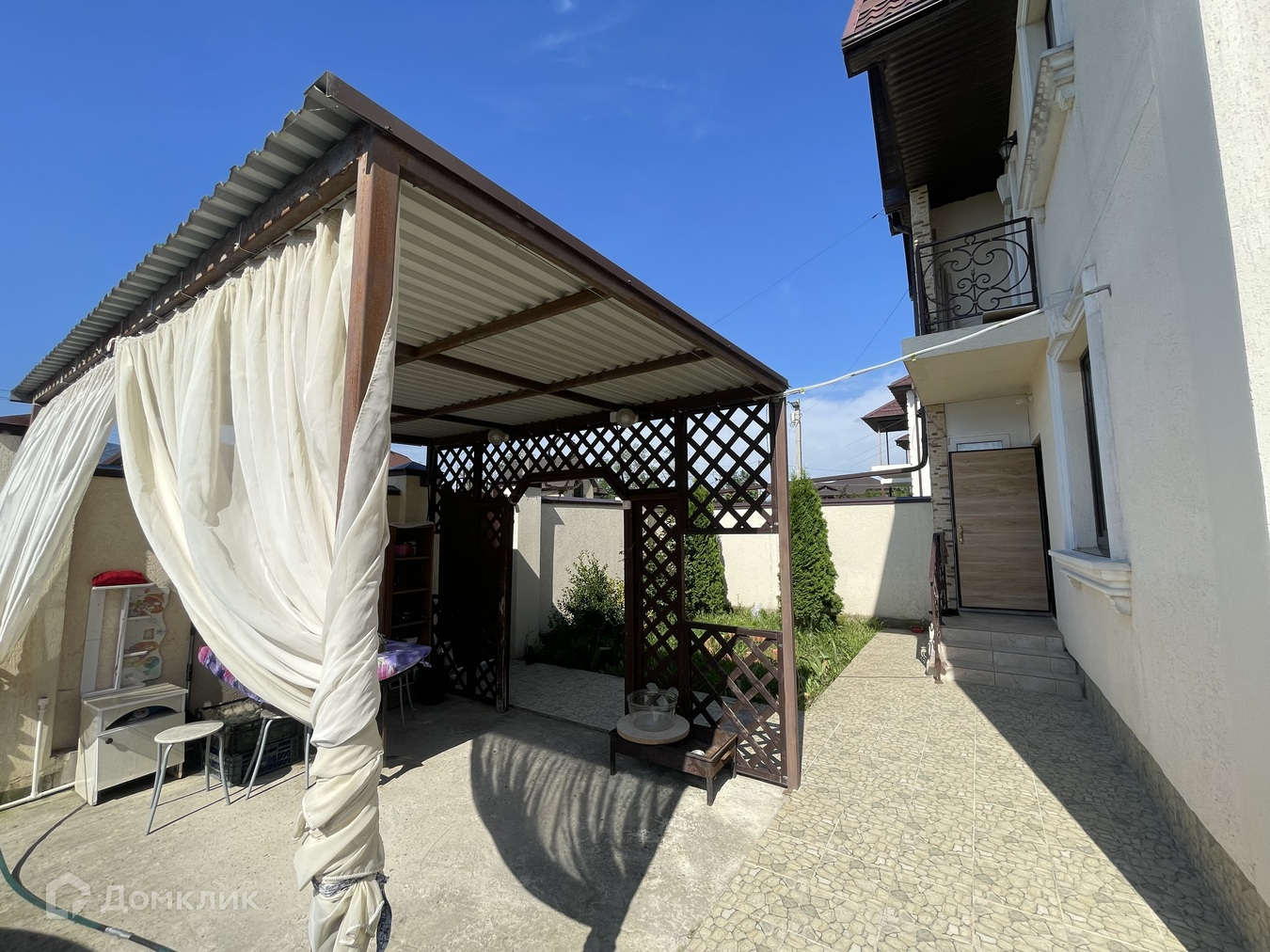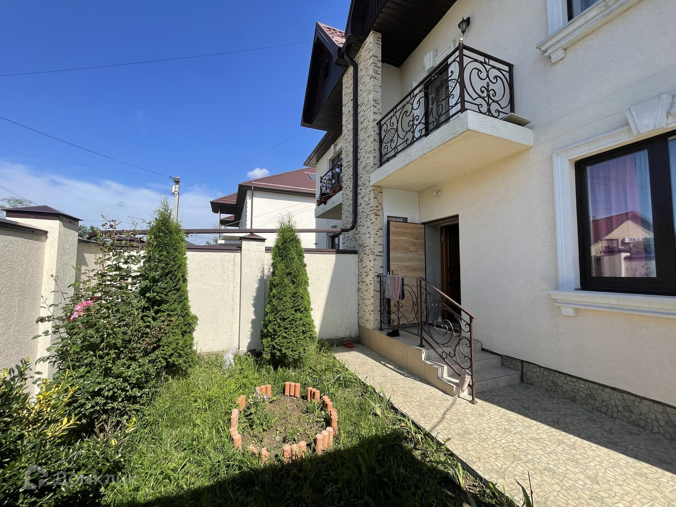1 ЭТАЖ:  45 кв.м. : 1 комната, уютная большая гостинная, прихожая, отдельный сан.узел. 2 ЭТАЖ:  75 кв.м. - 3 раздельные комнаты с балконами, отдельный сан.узел с САУНОЙ! В доме сделан полностью ремонт: полы керамогранит, обои, натяжные потолки. Мебель и техника остаются! Во дворе - парковочное место для автомобиля, зона для отдыха, на участке растут плодовые деревья.