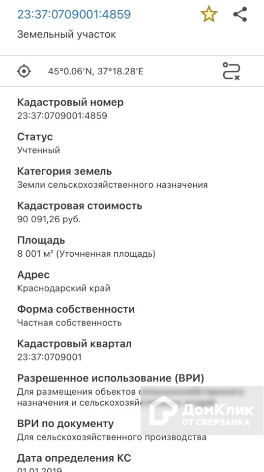 Кадастровый номер участка 23:37:0709001:4859