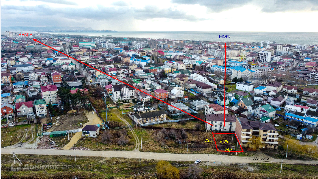 Продам земельный участок 6,25 сотки в интенсивно развивающемся районе п. Витязево в непосредственной близости от черного моря. Категория: земли населенных пунктов. Назначение: ИЖС. Участок имеет правильную геометрическую форму фасад участка 24,5 метров, глубина участка 25,5 м. Коммуникации центральные. Имеется возможность взять три смежных участка, что значительно расширит границы. Данный район предназначен для элитной застройки. Отличное место для строительства дома либо гостиницы рядом с морем.