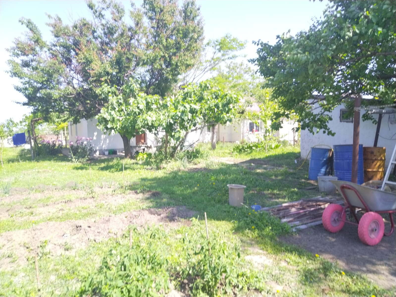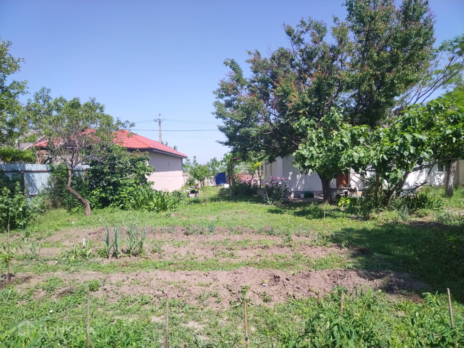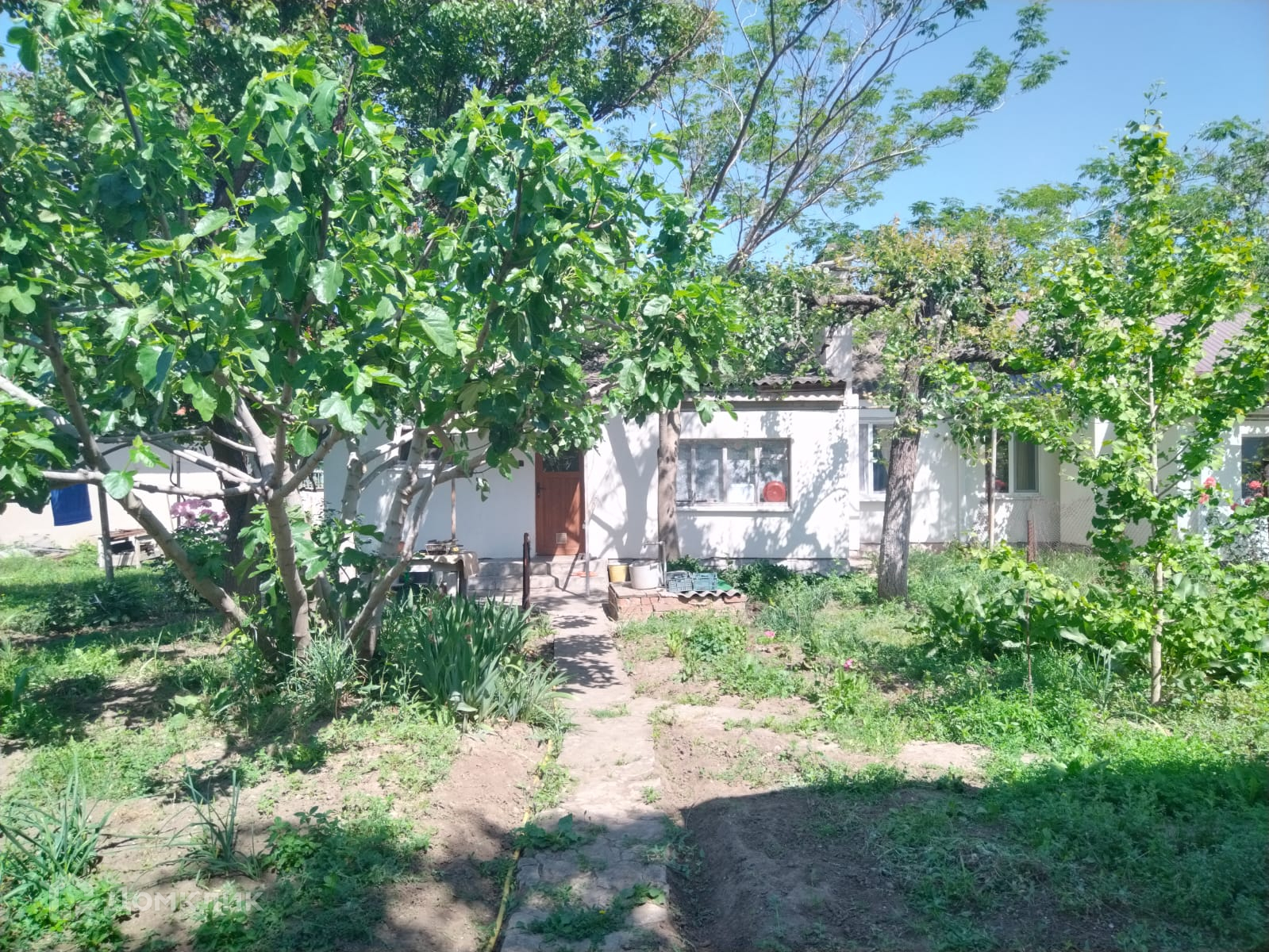 Участок 18м х 65м,. Дом  площадью 67 м2.: 4 комнаты, кухня с/у ,требуется  ремонт., Коммуникации: центральный водопровод, газ, электричество,  септик. Участок ухоженный: цветник, виноградник, плодовый сад.