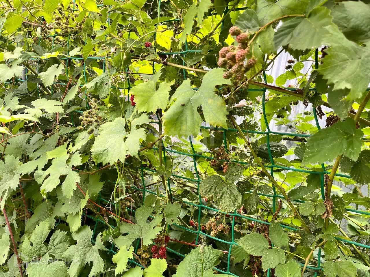 Земля ухожена, есть плодовые кустарники и фруктовые деревья.