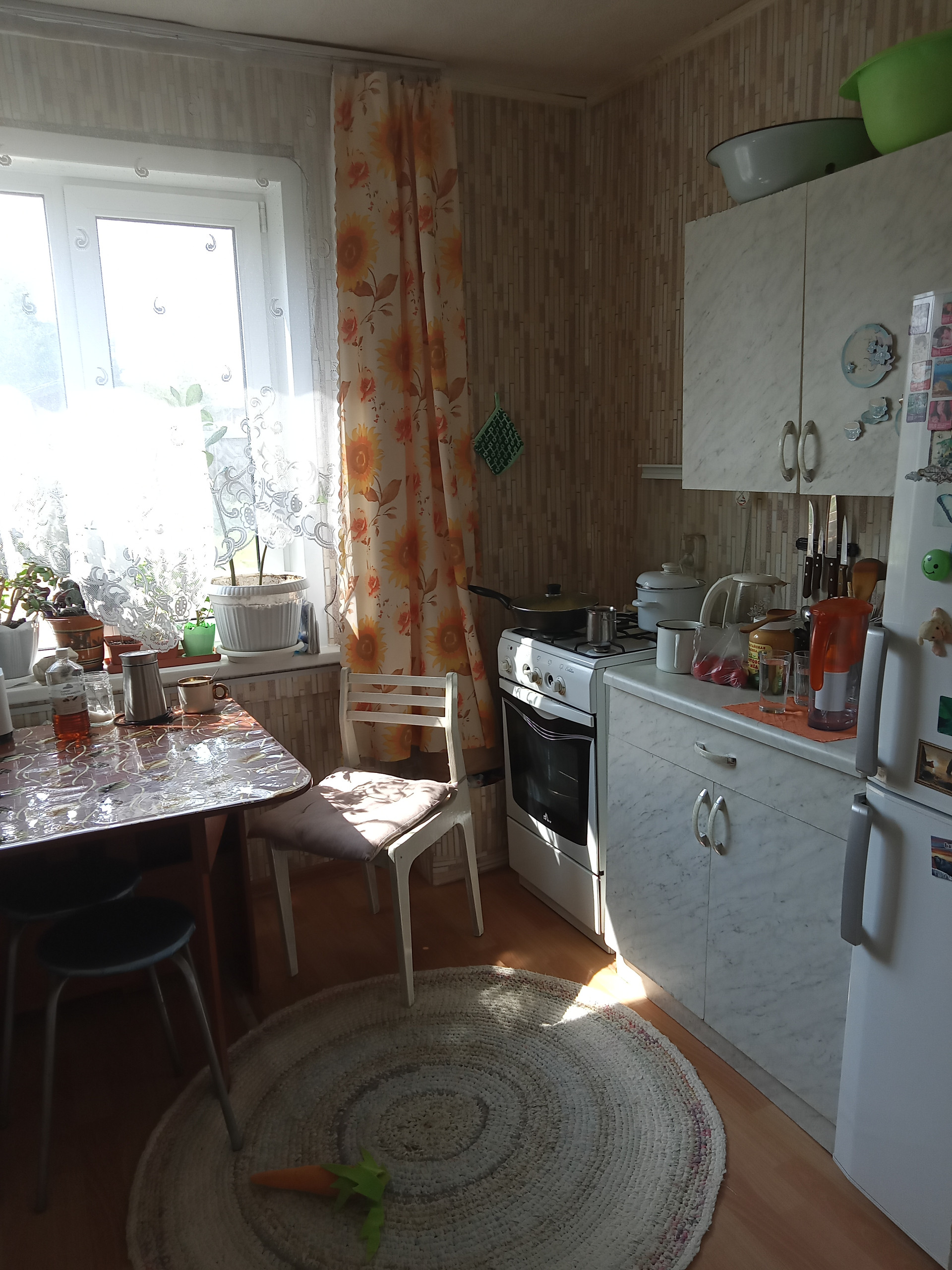 Полублагоустроенная трехкомнатная квартира - отопление центральное, водоснабжение -колонка. Рядом магазин, детский сад. Квартира очень теплая, планировка комфортабельная, комнаты изолированные. Есть хорошая баня с дровяником.