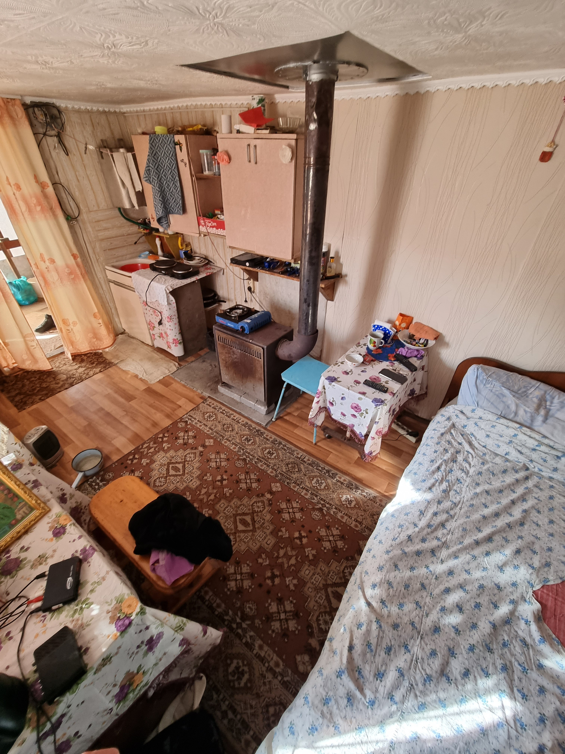 В доме есть место под баню либо под вторую комнату и туалет с душем.