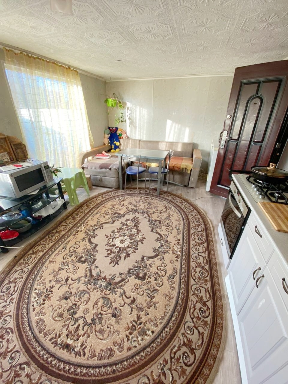 Планировка : Кухня, гостиная - студия,туалет с ванной совмещён стоит душевая кабина, зал, 2 спальни.