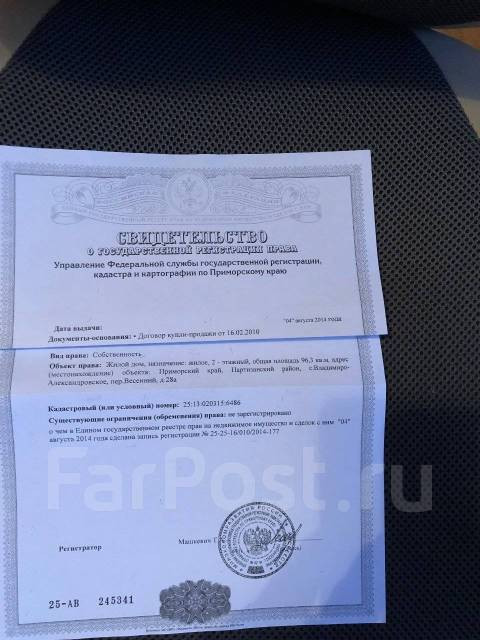 Продам коттедж в с. Владимиро-Александровское Партизанского района Приморского края в очень красивом месте. Площадь по документам 96,3 кв.м., фактическая площадь дома 200 кв.м. Дом из термоблока, утеплен пенопластом и канадским сайдингом Novik. Крыша из металлочерепицы. Двор выложен брусчаткой и камнем. Откатные ворота на пульте управления. Капитальный забор по всему периметру участка. В доме на 1 этаже большой отапливаемый гараж на 2 машины, кладовая для хранения овощей и консервации, техническое помещение. На 2 этаже- 2 спальни, гостиная, кухня, прихожая,кладовая,ванная, туалет. Остается кухонный гарнитур, встроенная техника(духовой шкаф, варочная поверхность, вытяжка), тумба-мойка в ванной, тумба-мойка в туалете, 3 шкафа-купе, 2 эл.титана (100 и 10 л), кондиционер.В комнатах и кухне натяжные потолки, в ванной и туалете-подвесные. На полу в комнатах и кухне- ламинат. В ванной и туалете кафель на полу и стенах.В прихожей и ванной теплые полы.Отопление на выбор-твердотопливное/ электрическое. В зале камин действующий.На участке расположены : баня, дровник, cкважина, септик, теплица 3х8, остается каркасный бассейн 2х4х1 с песочным фильтром. Имеются плодовые деревья и кустарники,виноградник. Участок не затапливается даже в самые сильные дожди.