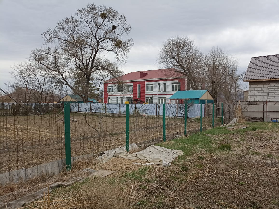 +Огорожен по периметру, распашные ворота.