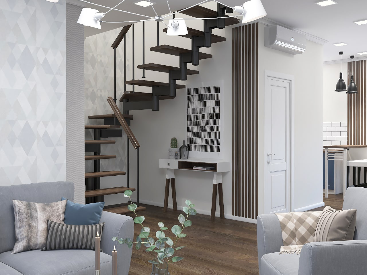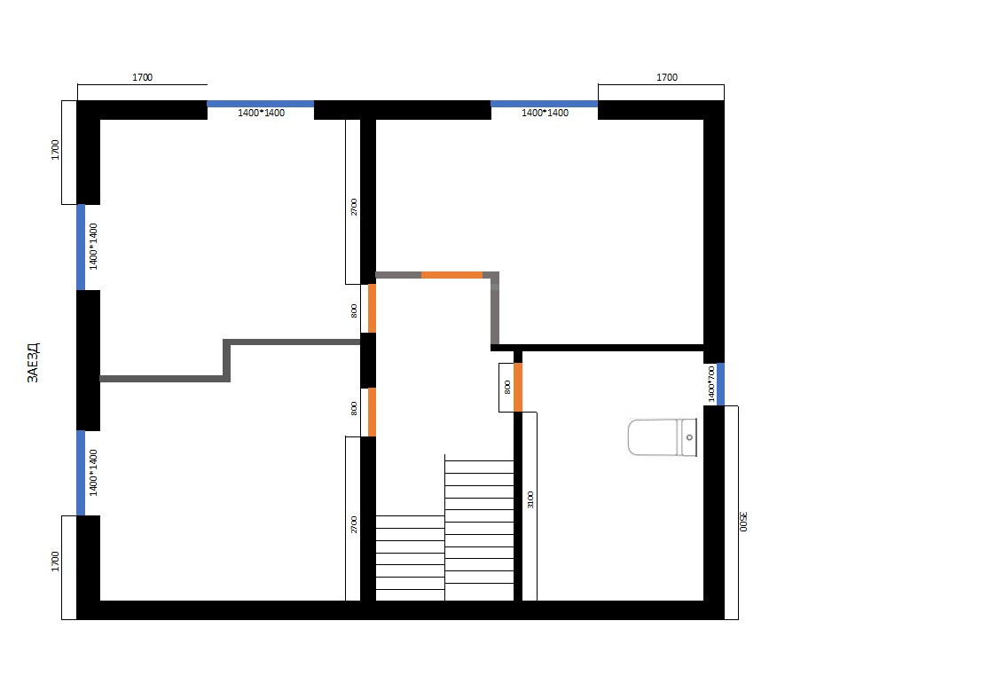 - 1 этаж - кухня гостиная, ванна - туалет, кабинет (спальня), котельная.