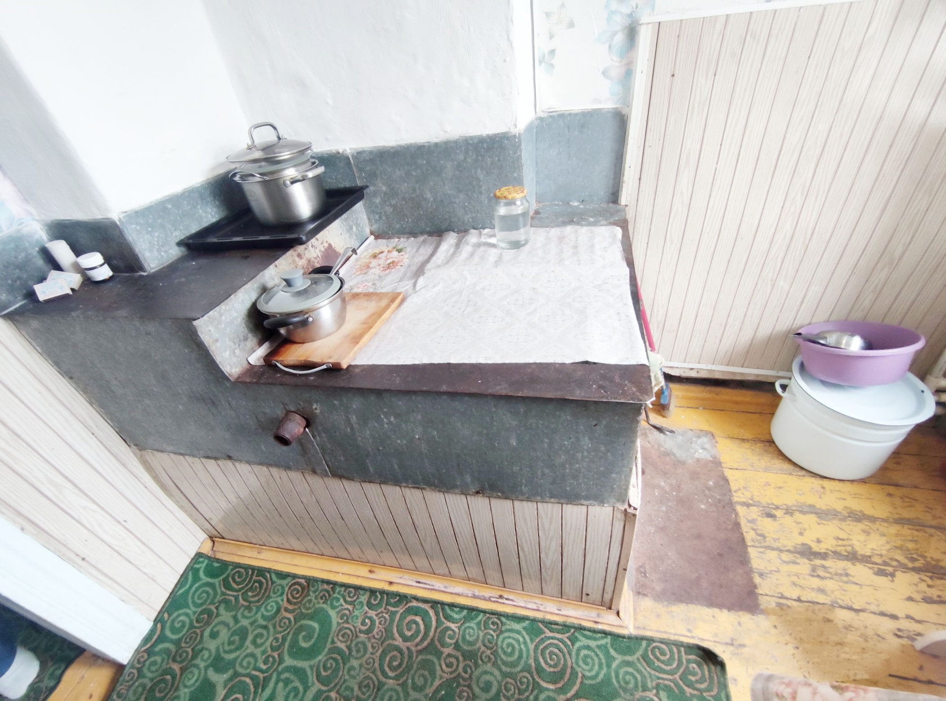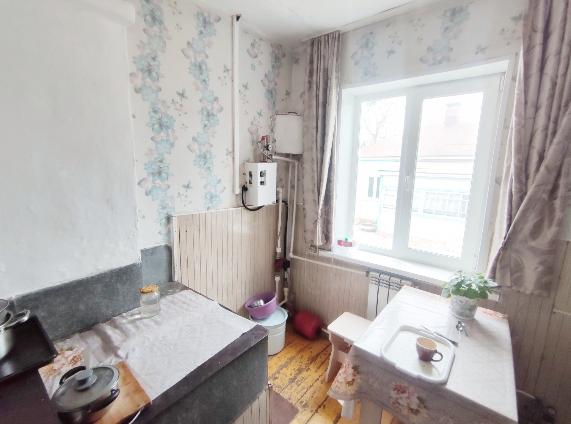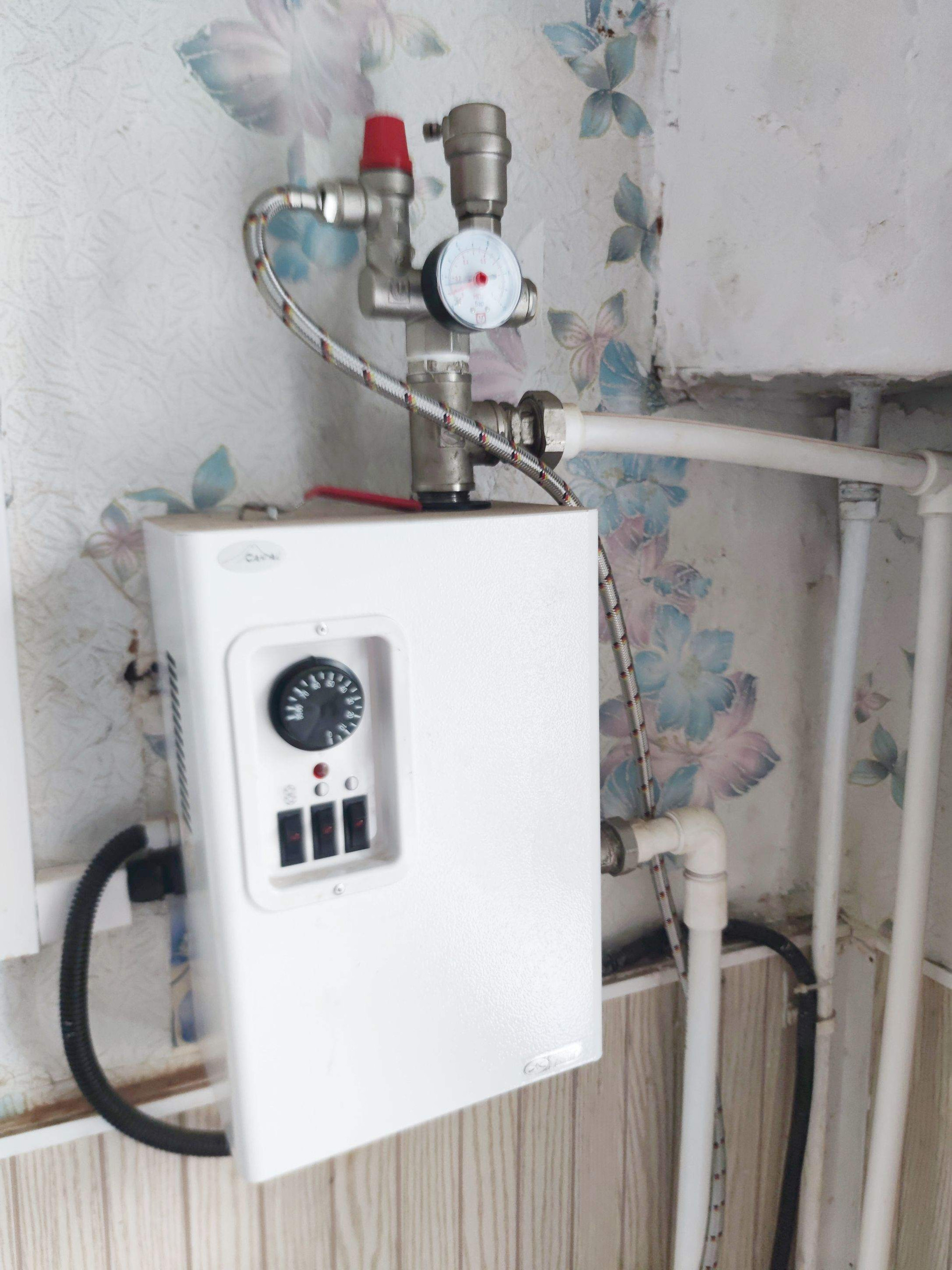 Отопление от электро котла, есть твёрдо топливная печь, по всему дому разводка системы отопления стоят радиаторы.