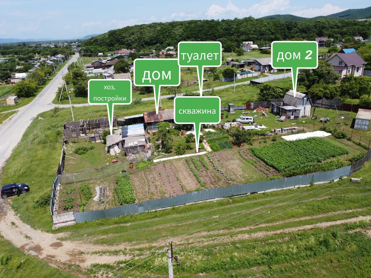 + Второй дом - 27,5 кв.м, Кухня, комната, прихожая, веранда (недостроенная) свет, печное отопление.
