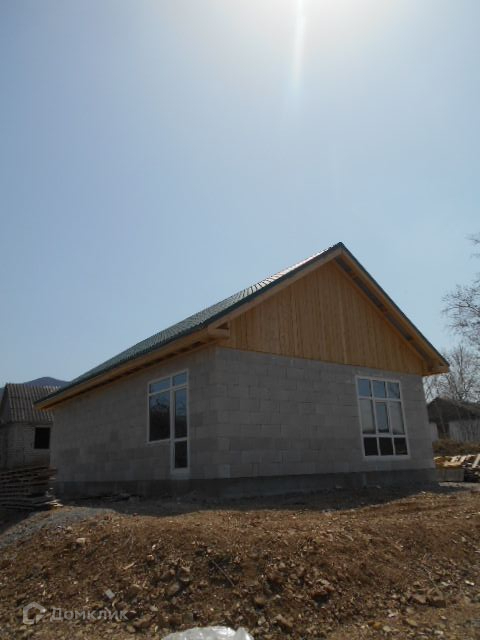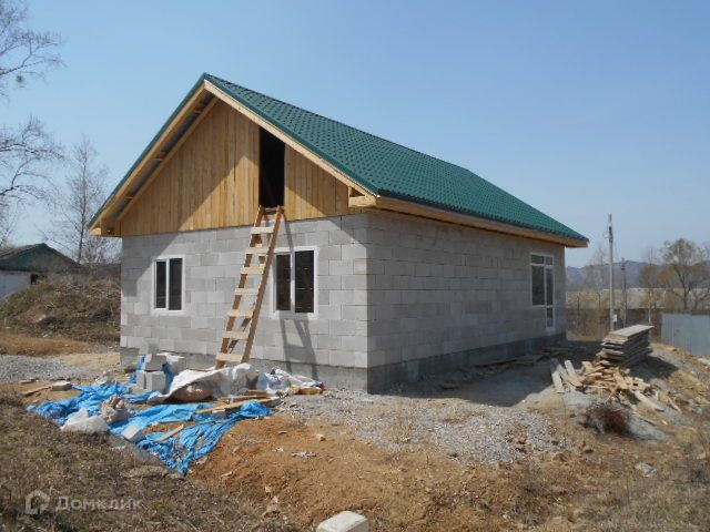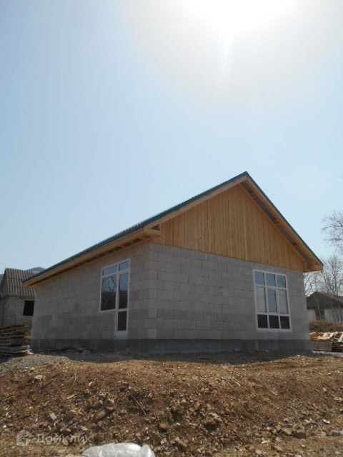 Продается отличный дом(новострой) из газобетона (Силбет) , скважина 58 метров, электричество 15 кВт, асфальт 50 метров. Дом расположен в хорошем экологичном развивающемся районе, что главное- незатапливаемый район (прошлогодний тайфун показал). Электричество в этом районе без перебоев , напряжение стабильно 220-230 В. Рядом детская площадка, построенная в 2020 году. На соседней улице остановка школьного автобуса, там же продуктовый магазин. В 50 метрах находится семейная баня. Через дорогу лес и ручей. Построен из качественных материалов. Фундамент ленточный на бетонных сваях 2,5- 3 метра глубиной, построен в мае 2022 года(отстоялся). Большие витражные окна (профиль на 70 тройной стеклопакет с зеркальным тонированием) в гостиной совмещенной с кухней и с выходом на террассу + две спальных комнаты. Теплые полы, котел на 12 кВт. Металлическая входная дверь с терморазрывом. Крыша утеплена и покрыта металлочерепицей. Без внутренней отделки. По мере вложения денег , цена может увеличиваться. Данный объект можно приобрести за наличный расчет, с использованием средств материнского капитала, ипотеки или других сертификатов, а также с банком-партнером: Сбербанк, ВТБ, Россельхозбанк, Примсоцбанк, Банк Приморье,  Восточный, Газпромбанк, Дальневосточный банк, ДВИЦ. Подготовка пакета документов в соответствии с требованиями регистрирующего органа. Комплексная поддержка при подготовке документов для заключения ипотечных сделок и юридическое сопровождение на всех этапах процесса. Окажем поддержку в Юридических, Оценочных, Строительно-ремонтных работах.