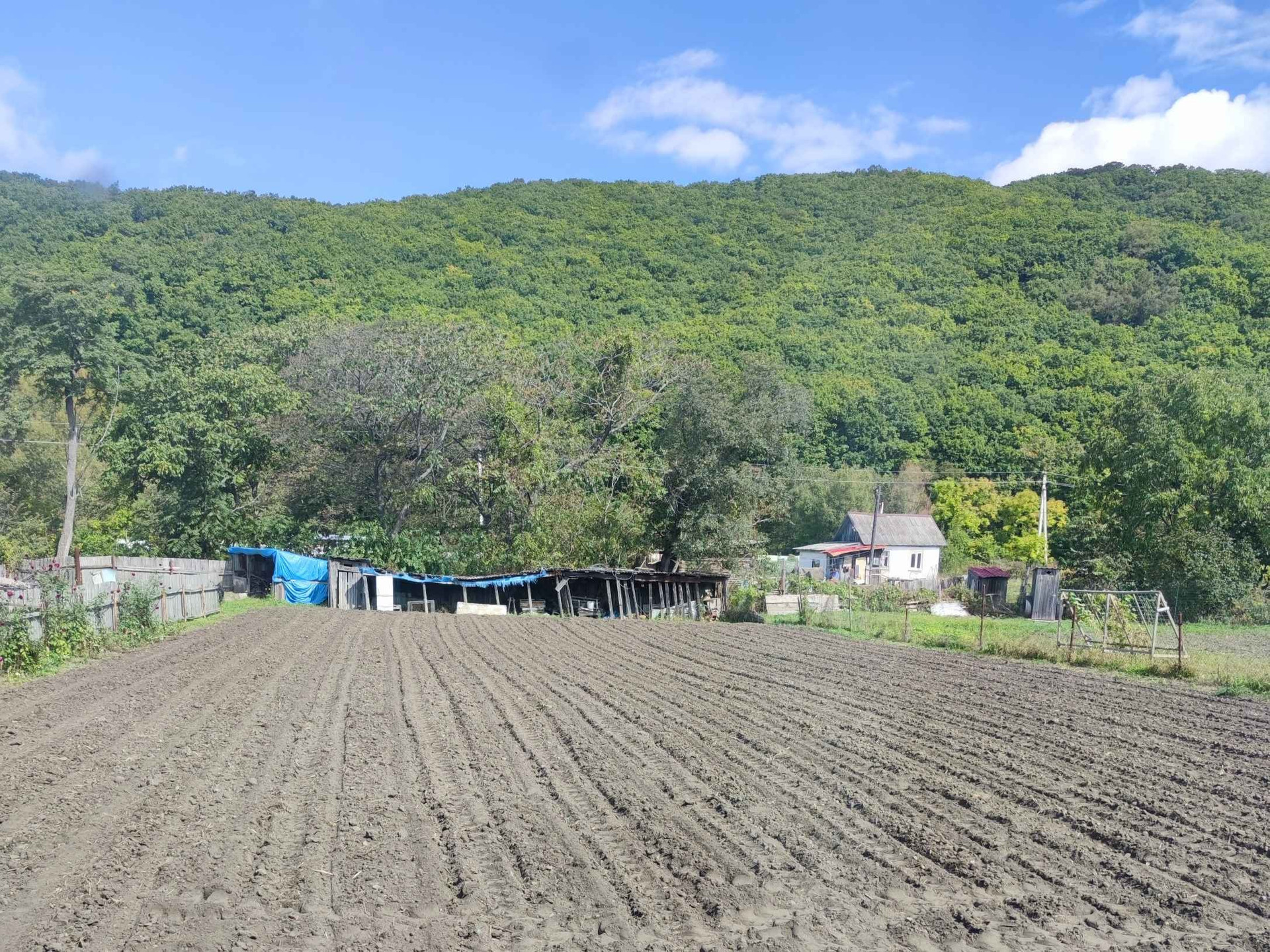 Участок ровный 22.39 сотки, есть хоз. постройки.