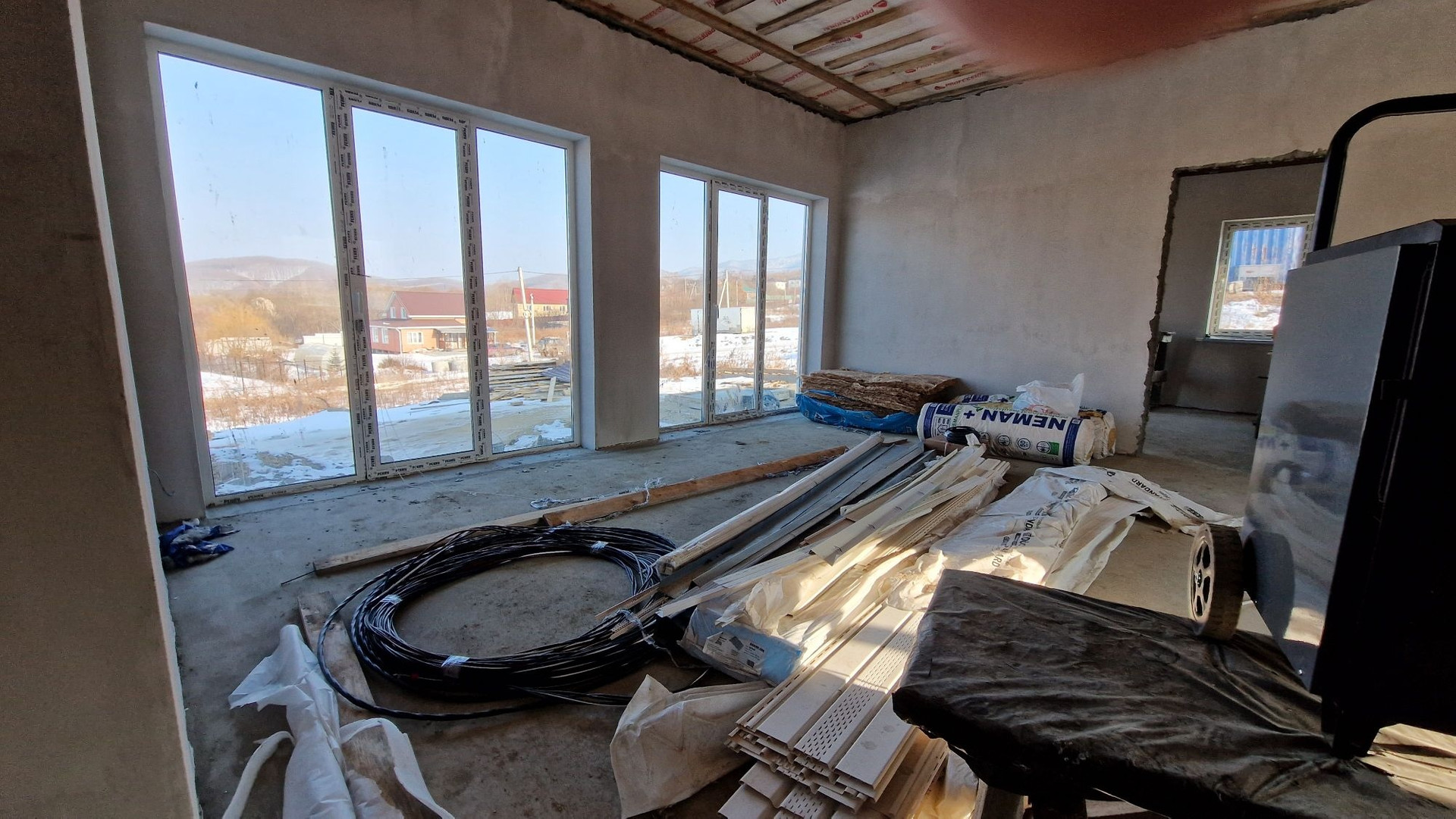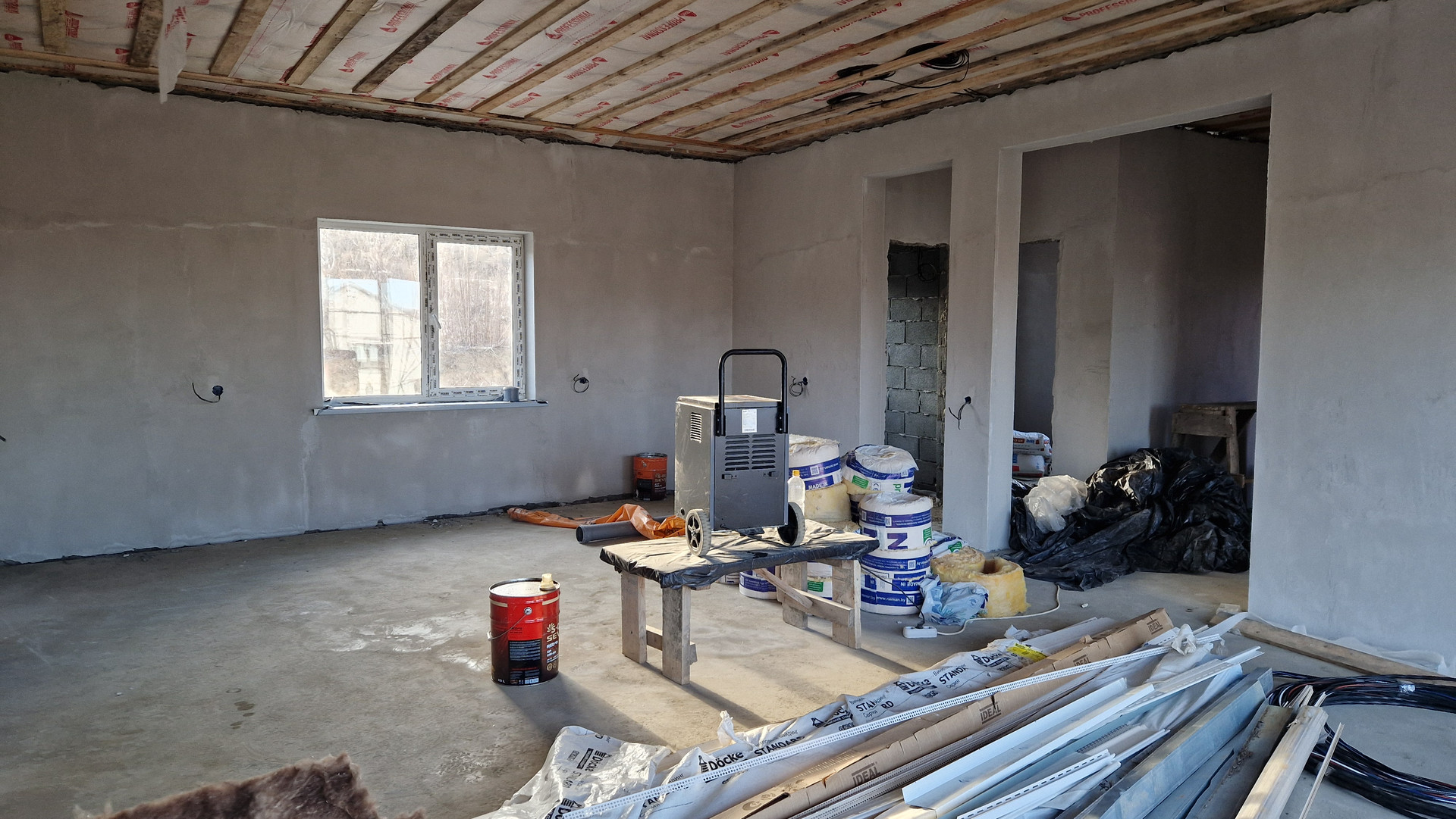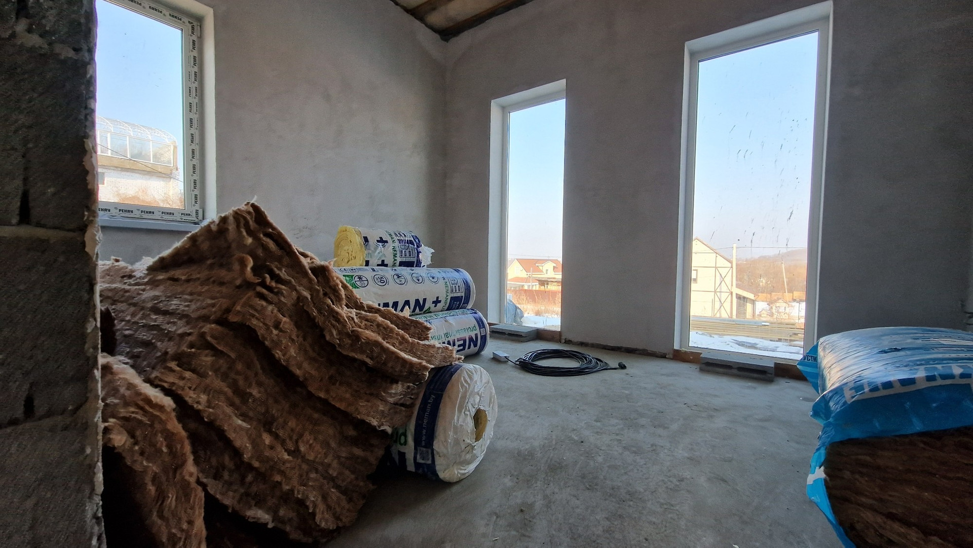 - полы 1 этажа - стяжка, готово под укладку ламината, ПВХ и тп.