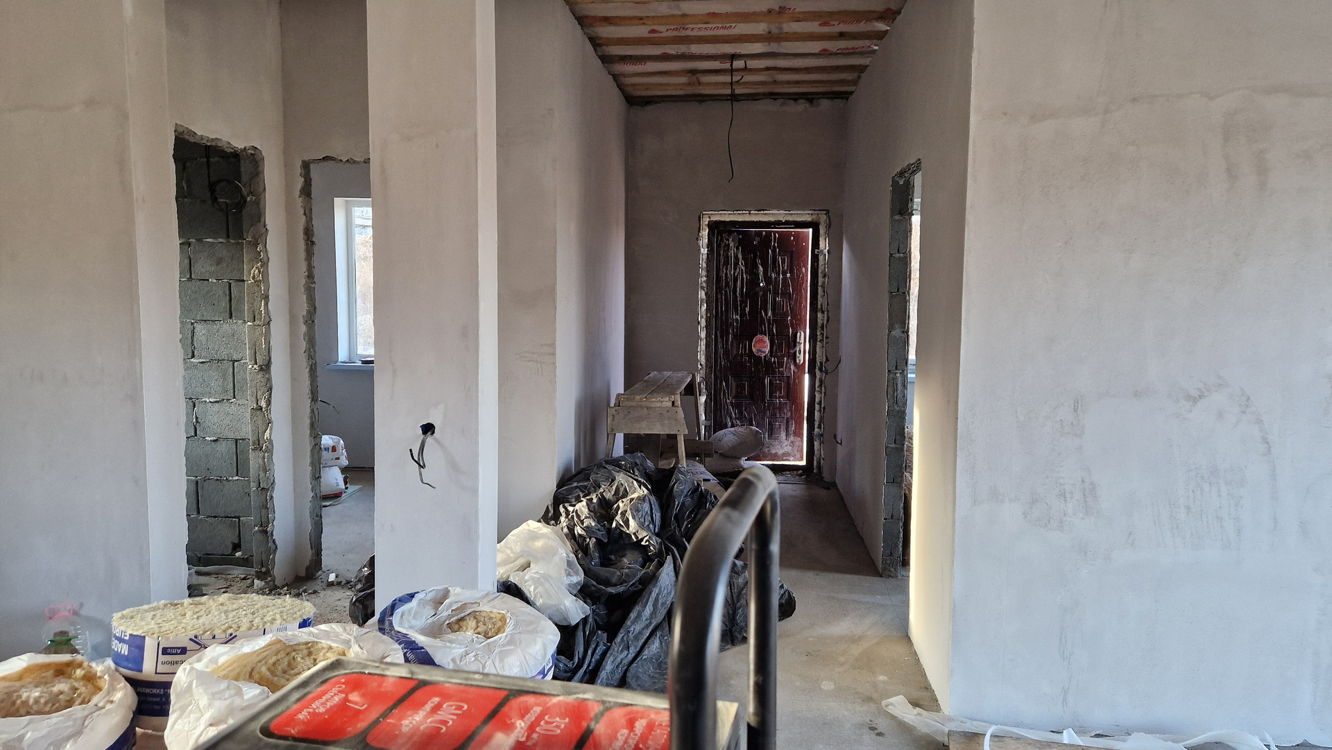 - стены внутренние - оштукатурены под маяки ровные, шпаклевка в один слой.