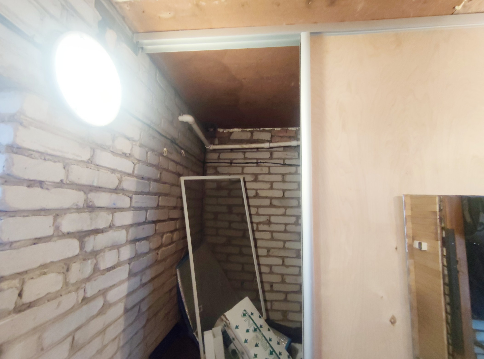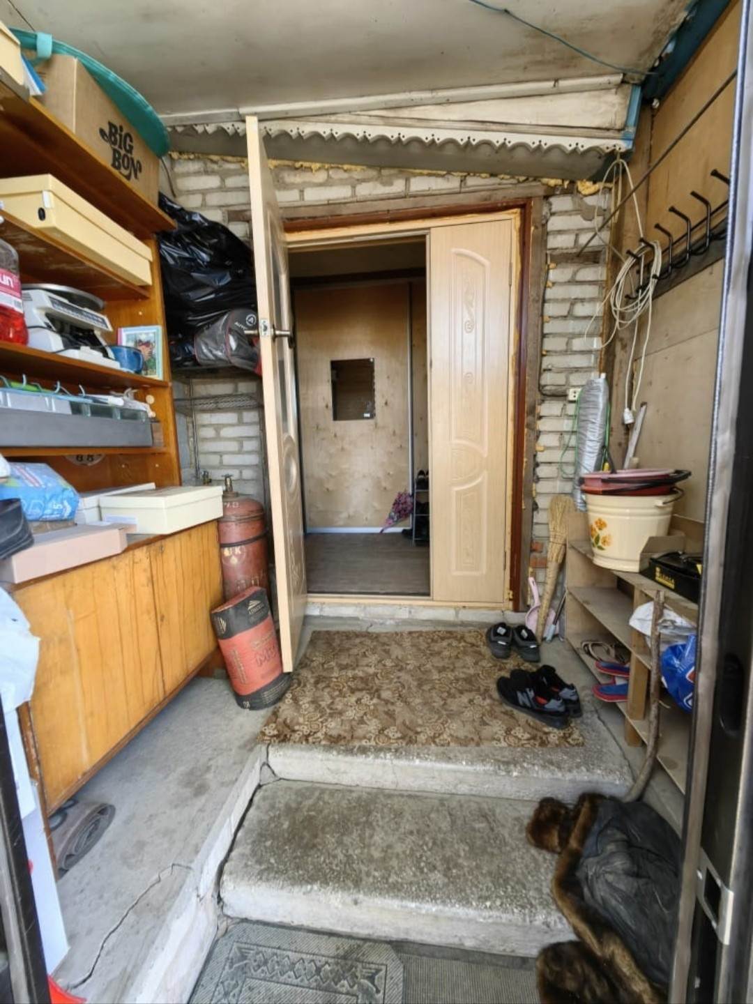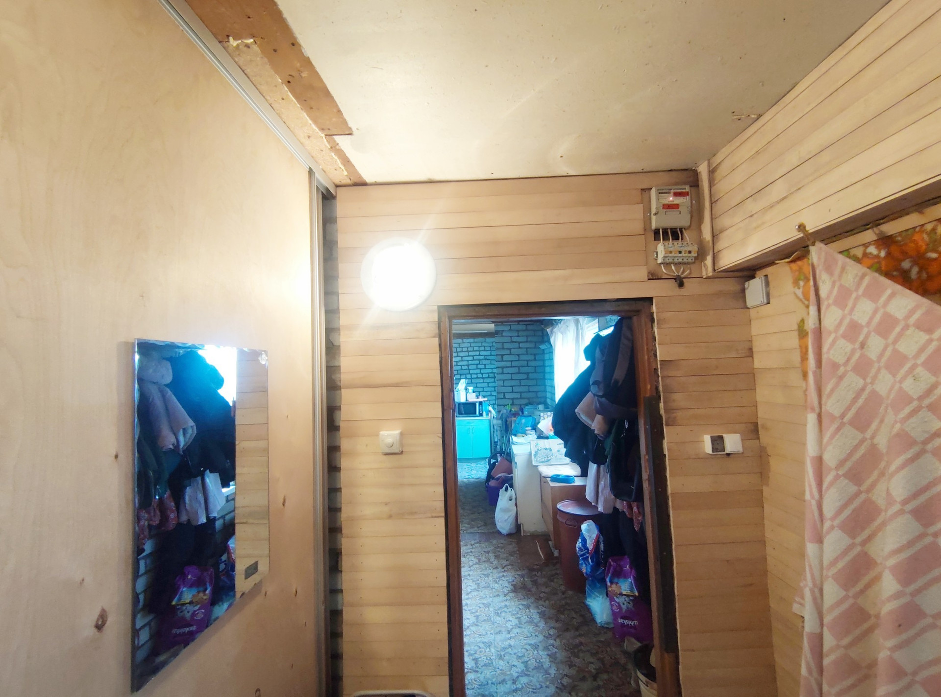 - Корридор , который разделяет дом на две жилые части, в котором большой шкаф купе , гардеробная.