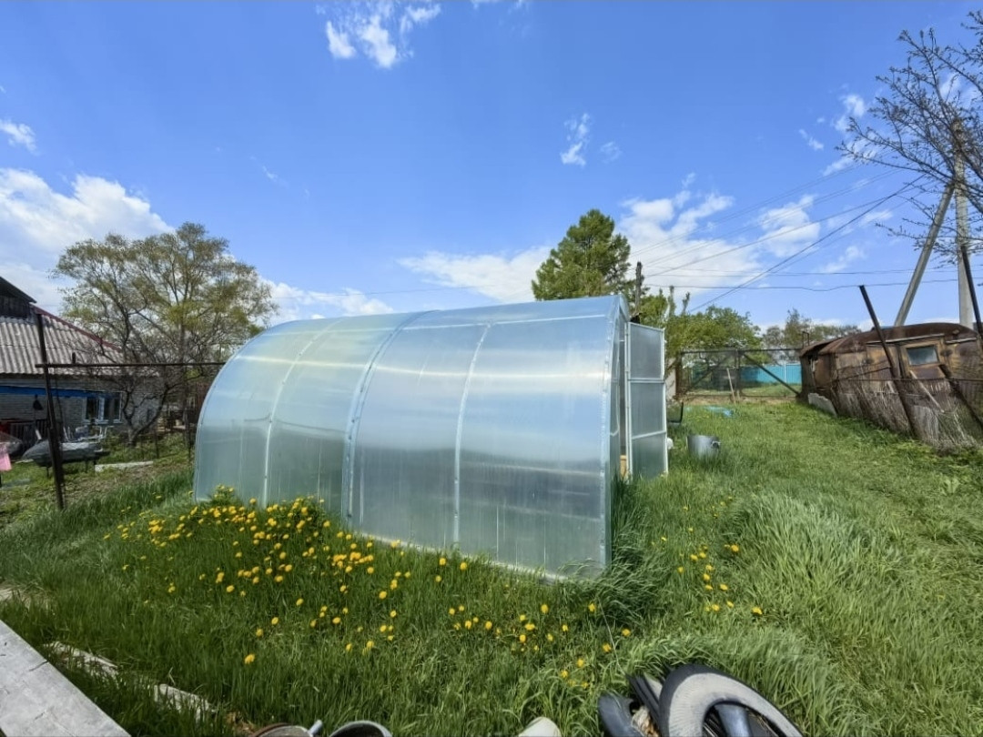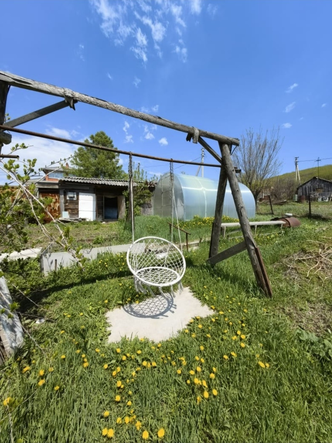- На участке, стоит гараж, хоз. помещение, вольер, теплица, зона отдыха с детской горкой, качелями .