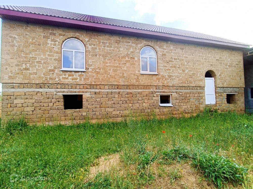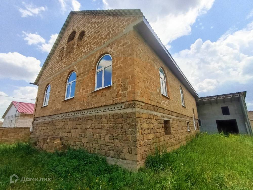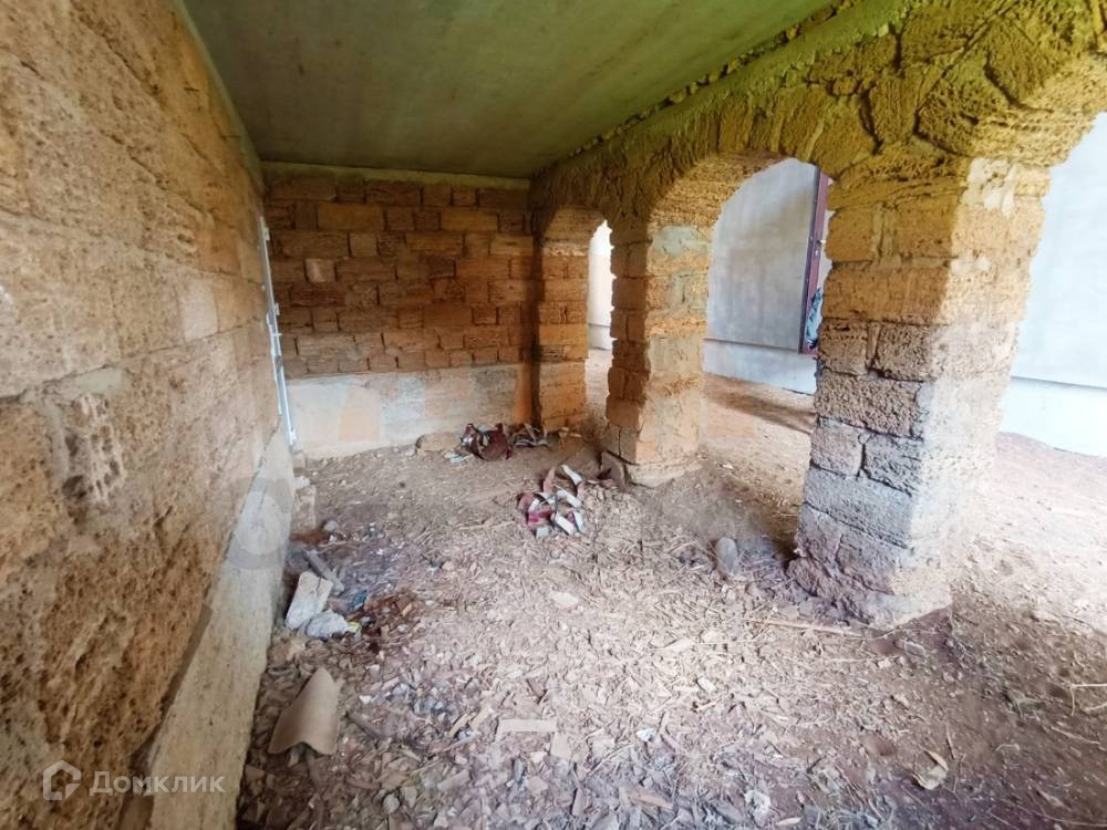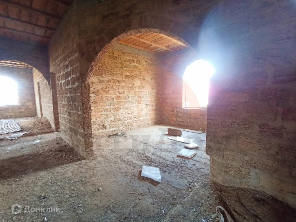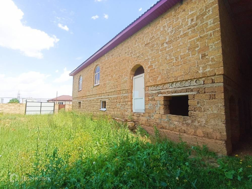 Дом построен в 2016 году, из полного ракушечного камня, на мощном железобетонном фундаменте, с цокольным этажом и колоннами, мансардным этажом под металлочерепичной крышей.