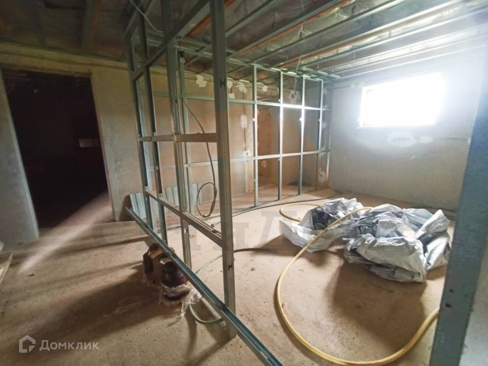 Отделка: Дом под отделку, в состоянии черновой. Помещение 2, в состоянии чистовой: выровнены стены, подшит потолок, залита стяжка, установлен газовый котёл и ванная.