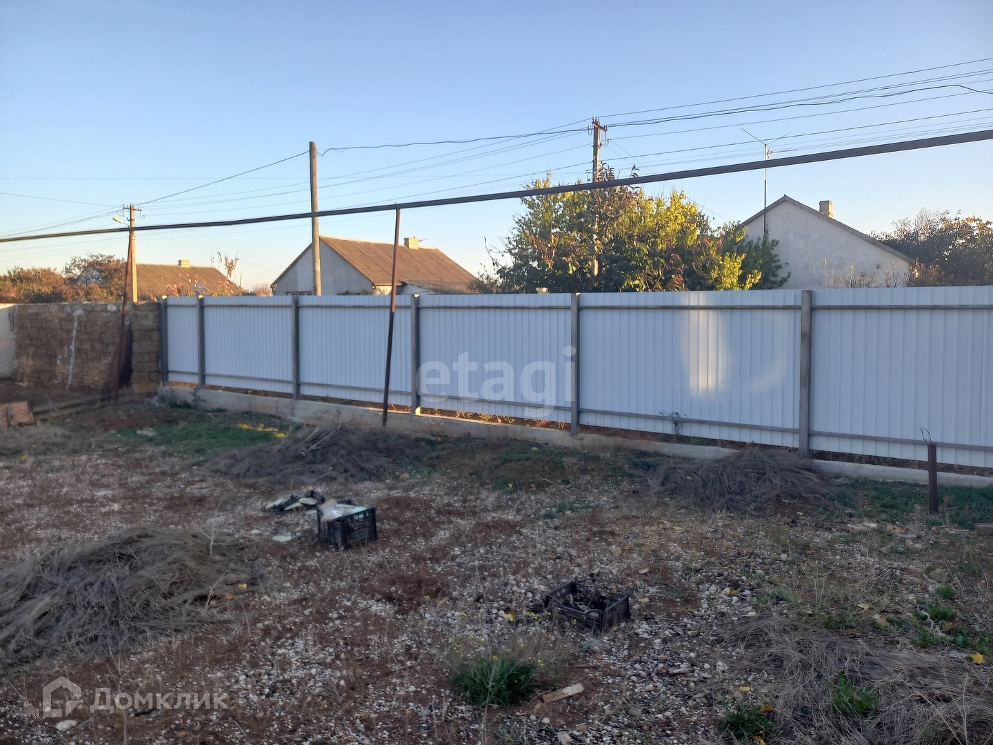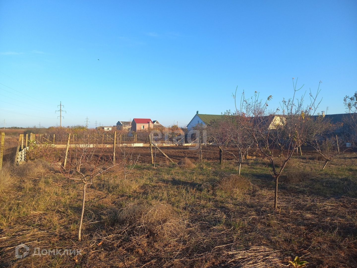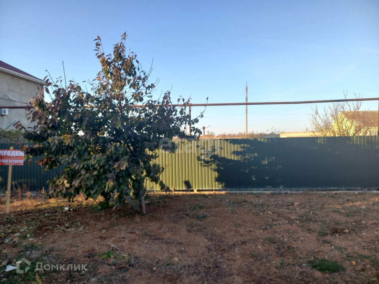 Участок огорожен забором, ровный, правильной формы, земля плодородная, находится на жилой улице, вода заведена на участок, газ проходит по забору, высажены фруктовые деревья, миндаль, персик, груша.
