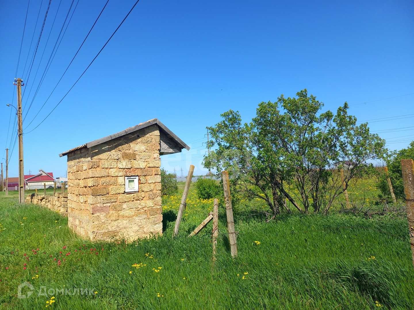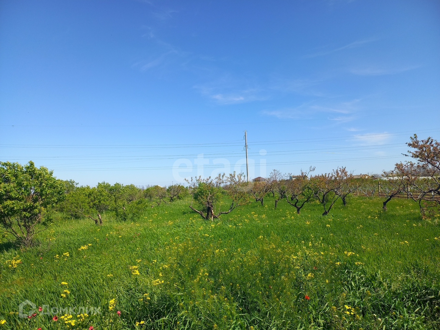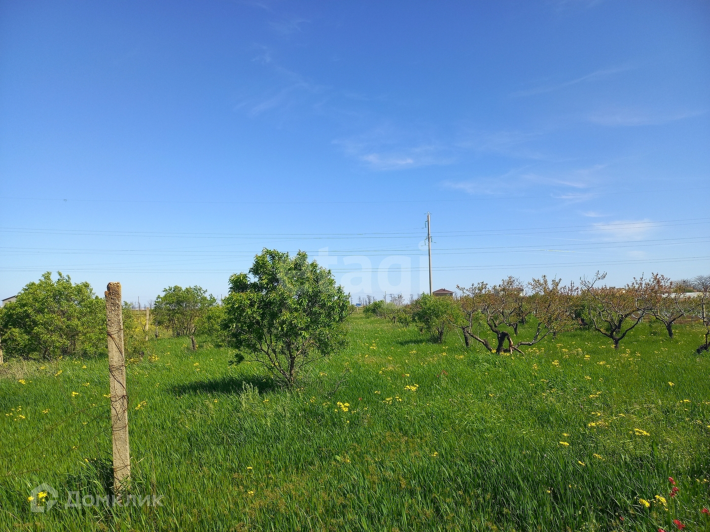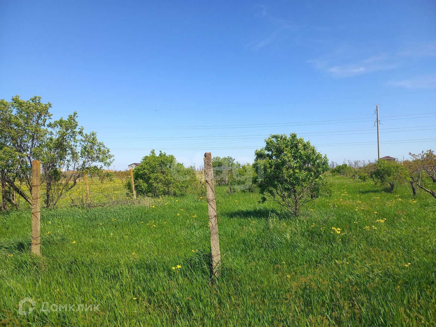 На территории растут персиковые деревья, соседи уже построились.