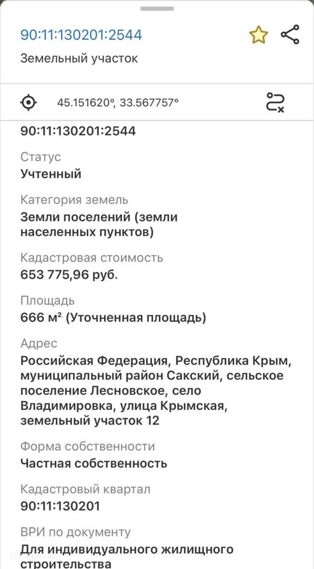 Участок под ИЖС, 6.7 сот. на продажу в селе Владимировка, Крымская улица