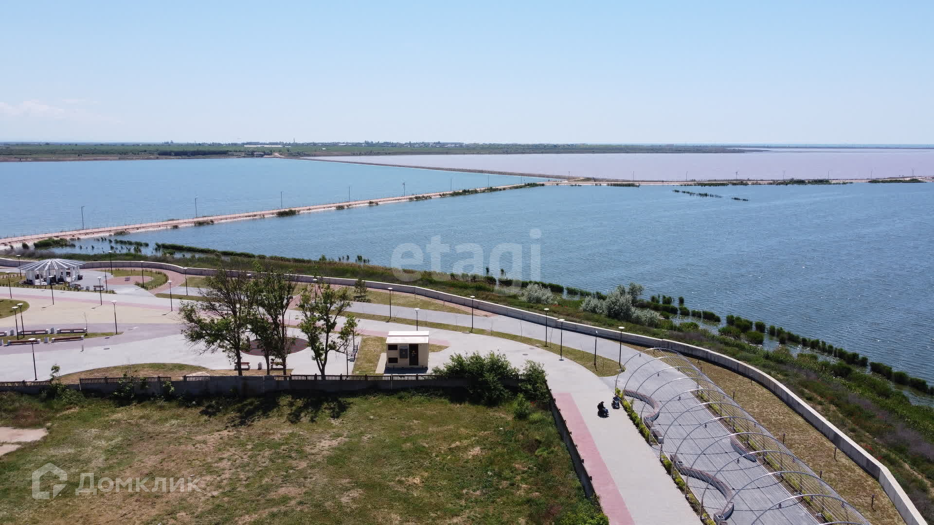 Земельный участок расположен в 5 минутах езды до Черного моря и благоустроенных песчаных пляжей протяженностью 8 км, 2 км до Розового озера (Сасык сиваш), 5 км до центра города-курорта Саки. 3 км до соседнего поселка Прибрежное в котором началась реализация масштабных строительных проектов под названием: ЖК Розовое озеро, апартаментный комплекс Ола апартс, курортный комплекс Прибрежный, апартаментный комплекс и впервые в истории РФ новый санаторий: Птица.