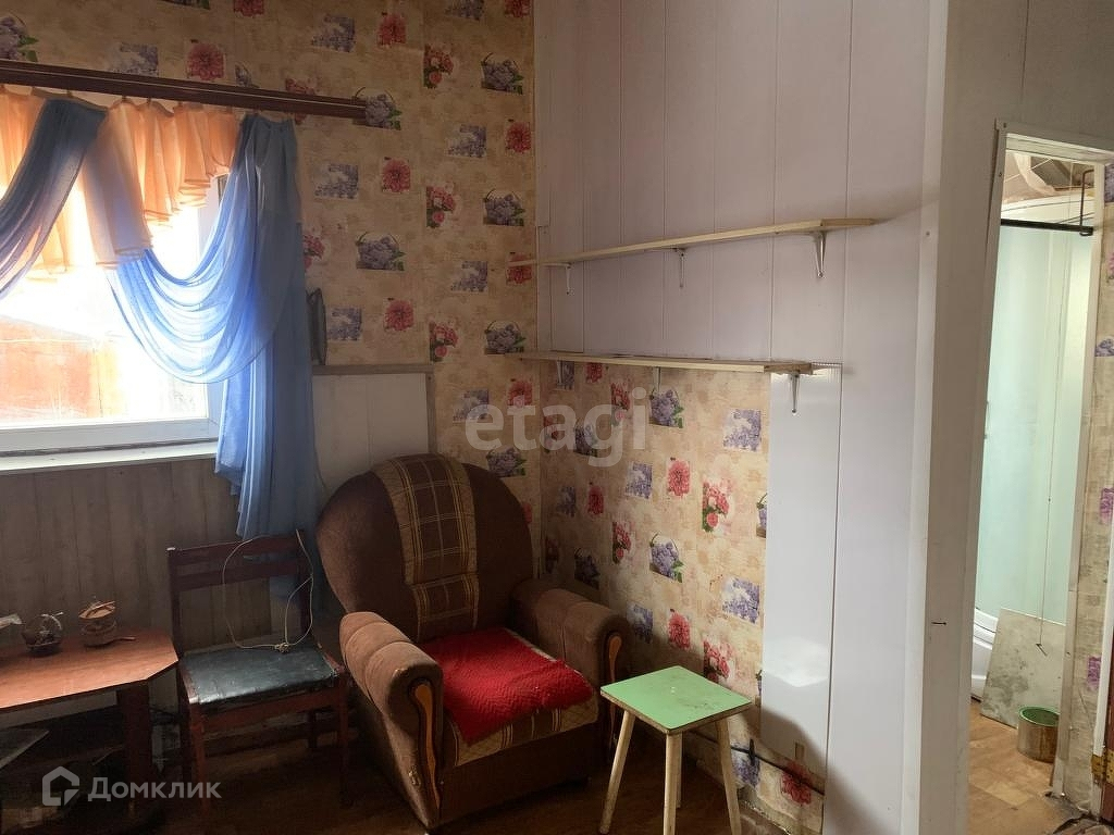 Территория огорожена забором. Дом состоит из просторной проходной кухни (пристрой к основному дому), двух изолированных комнат, в которые вход через зал, есть санузел (душевая кабина) Требуется косметический ремонт: пол и потолки деревянные, окна пластиковые.