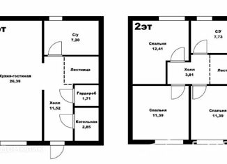 Площадь дома составляет 90 кв.м. Характеристики данного дома: 1 этаж Кухни-гостиная Холл Санузел 1 Санузел 2 Котельная Спальня родительская Спальня площадью Спальня площадью Комплектация дома включает в себя: - Материал стен - Газоблок - Фундамент - Армированный ростверк на сваях - Покрытие крыши - Металлический профиль - Отделка карнизных свесо... |